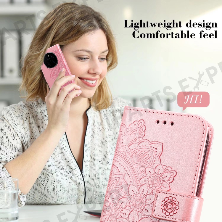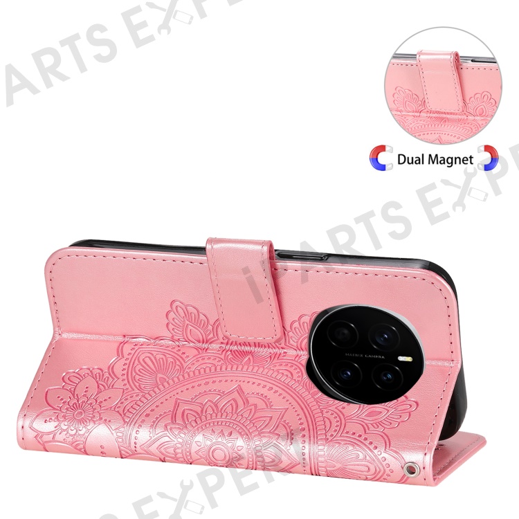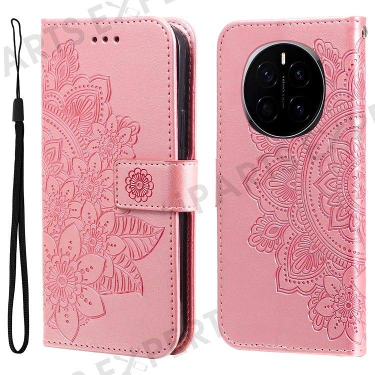 For Honor Magic7 5G Case Floral Pattern PU Leather Wallet Stand Phone Cover - Pink