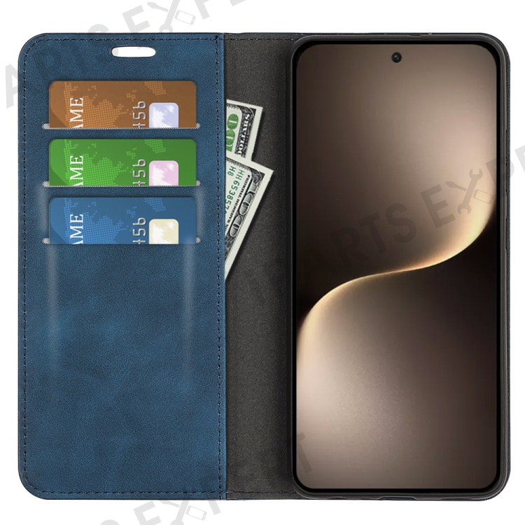 For Honor Magic7 5G Case Skin-Touch Leather Wallet Phone Cover - Blue