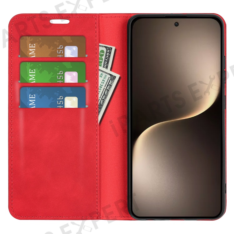 For Honor Magic7 5G Case Skin-Touch Leather Wallet Phone Cover - Red