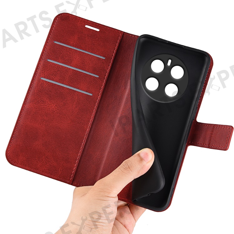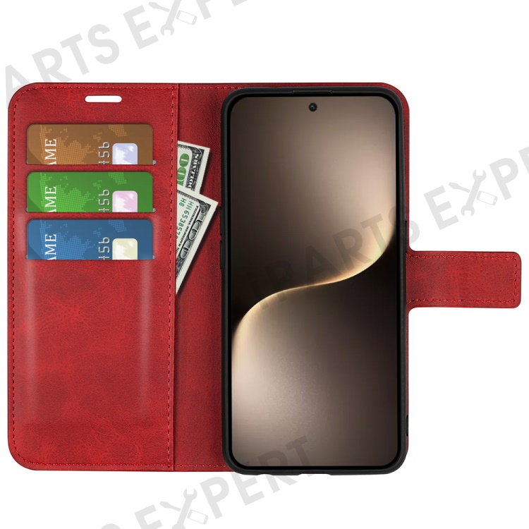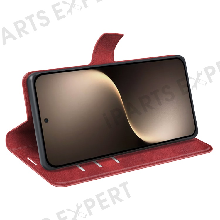 For Honor Magic7 5G Stand Case Anti-Scratch Calf Texture Leather Phone Cover - Red