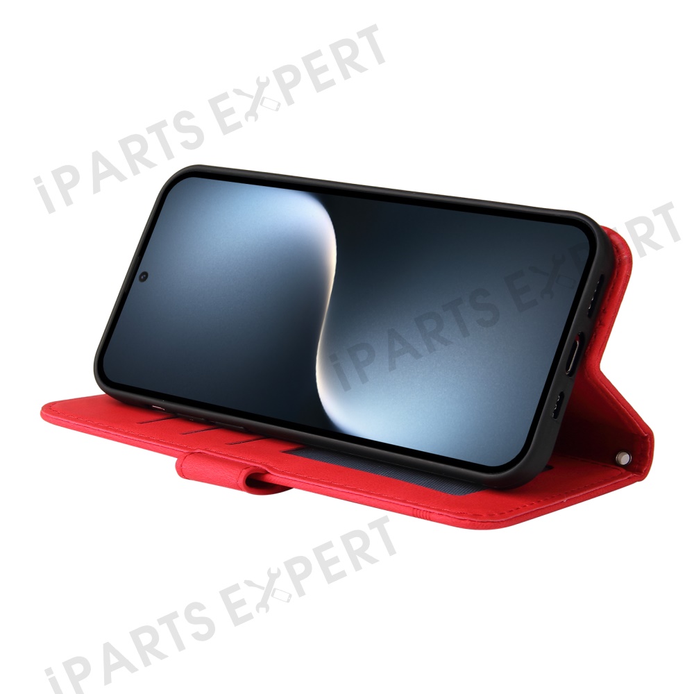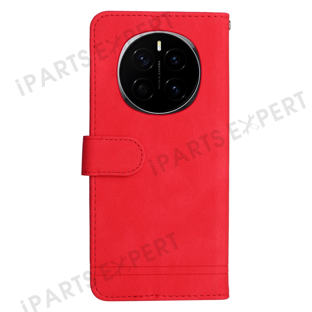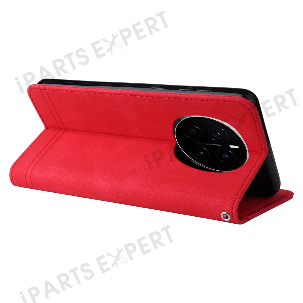 For Honor Magic7 5G Leather Wallet Cases Skin Touch Phone Cover Stand with Strap - Red