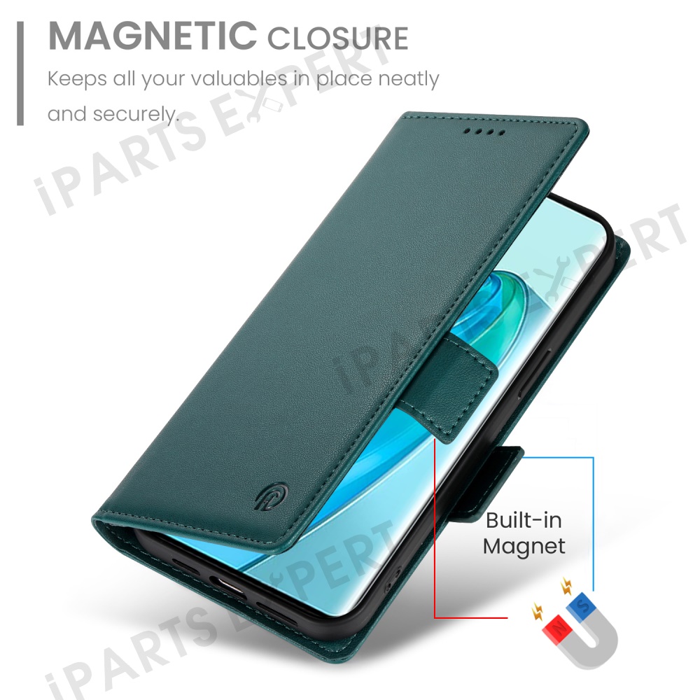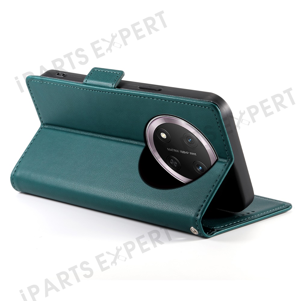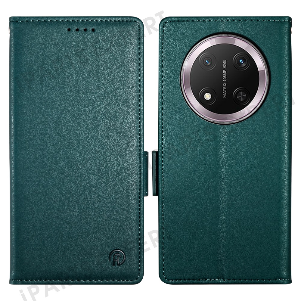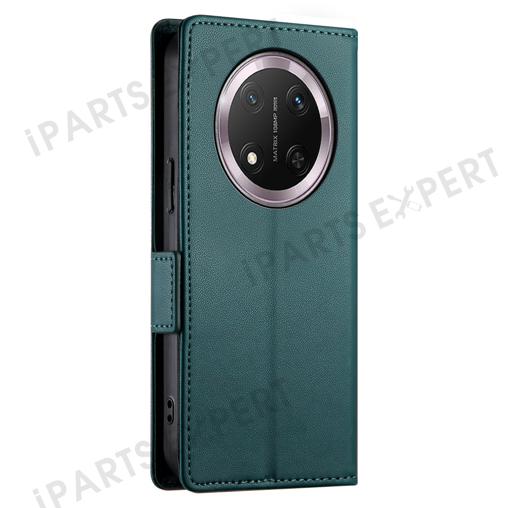 For Honor Magic7 Lite 5G / X9c 5G / X60 Pro 5G Stand Case PU Leather Wallet Phone Cover - Blackish Green