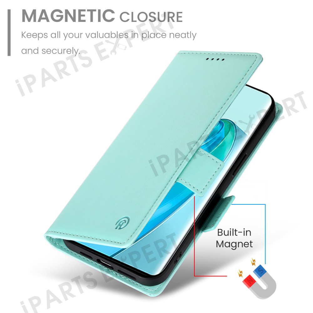 For Honor Magic7 Lite 5G / X9c 5G / X60 Pro 5G Stand Case PU Leather Wallet Phone Cover - Mint Green