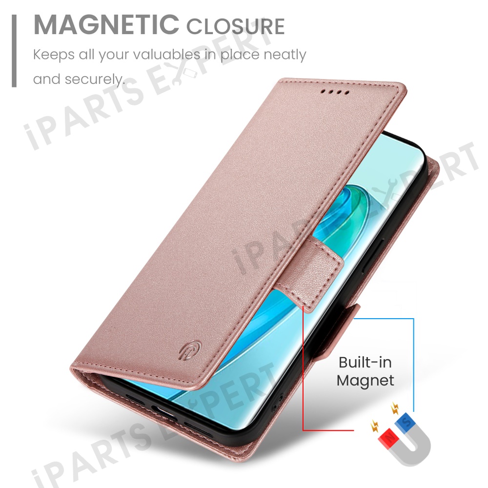 For Honor Magic7 Lite 5G / X9c 5G / X60 Pro 5G Stand Case PU Leather Wallet Phone Cover - Rose Gold