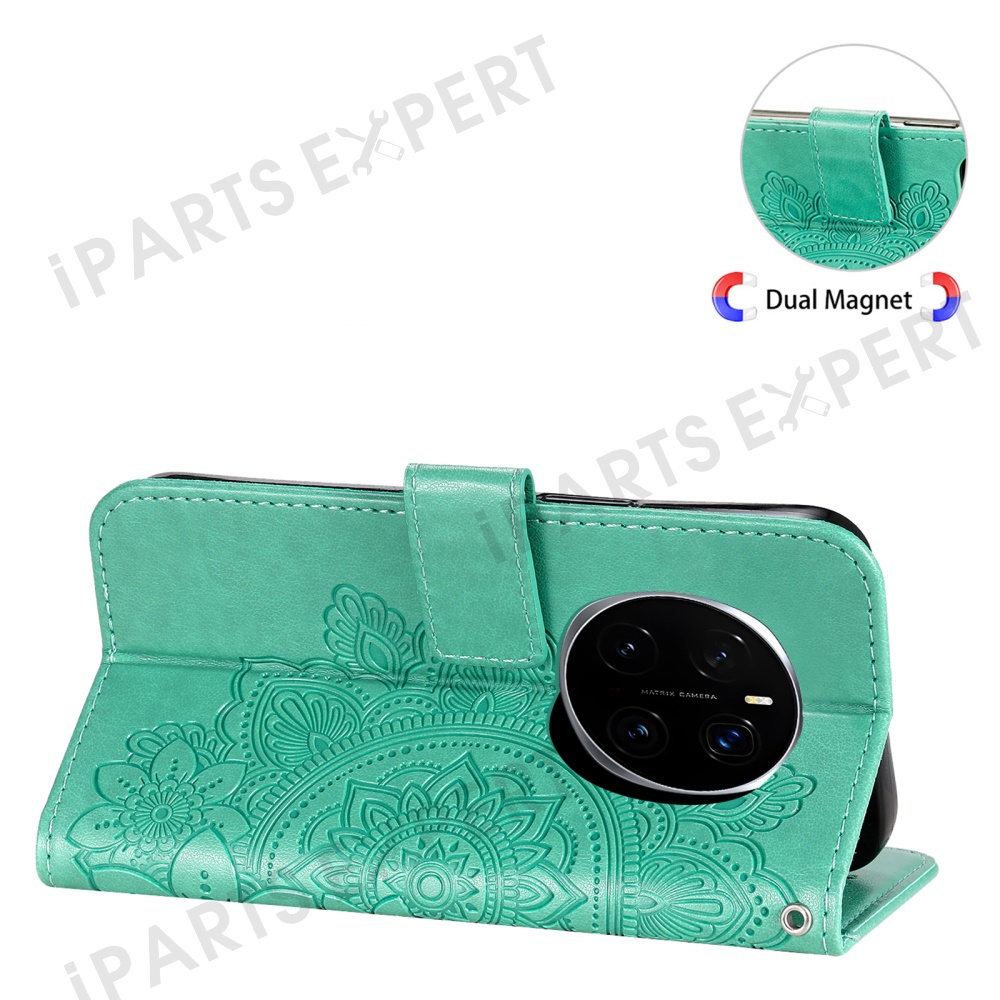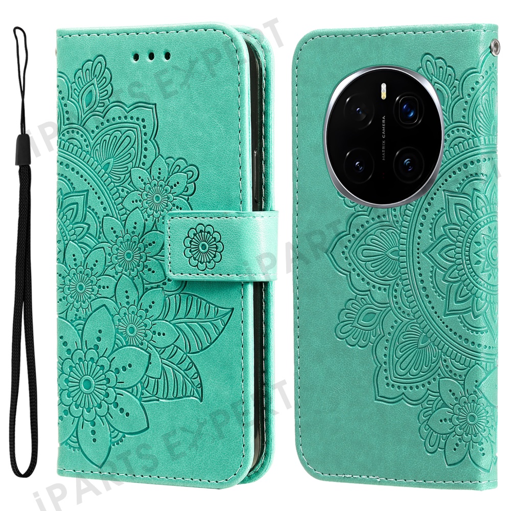 For Honor Magic7 Pro 5G Case Floral Pattern PU Leather Wallet Stand Phone Cover - Green