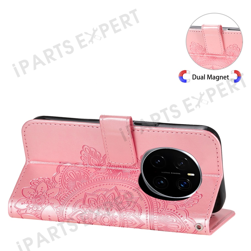 For Honor Magic7 Pro 5G Case Floral Pattern PU Leather Wallet Stand Phone Cover - Pink