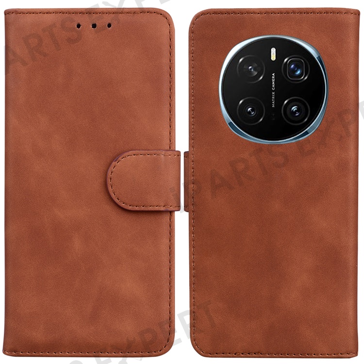 For Honor Magic7 Pro 5G Case Solid Color Leather Wallet Phone Cover - Brown