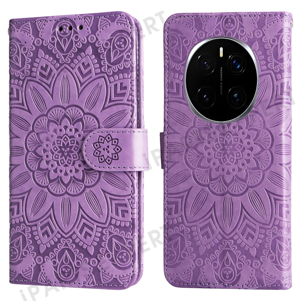 For Honor Magic7 Pro 5G Case Sunflower Imprint Leather Wallet Phone Cover - Purple