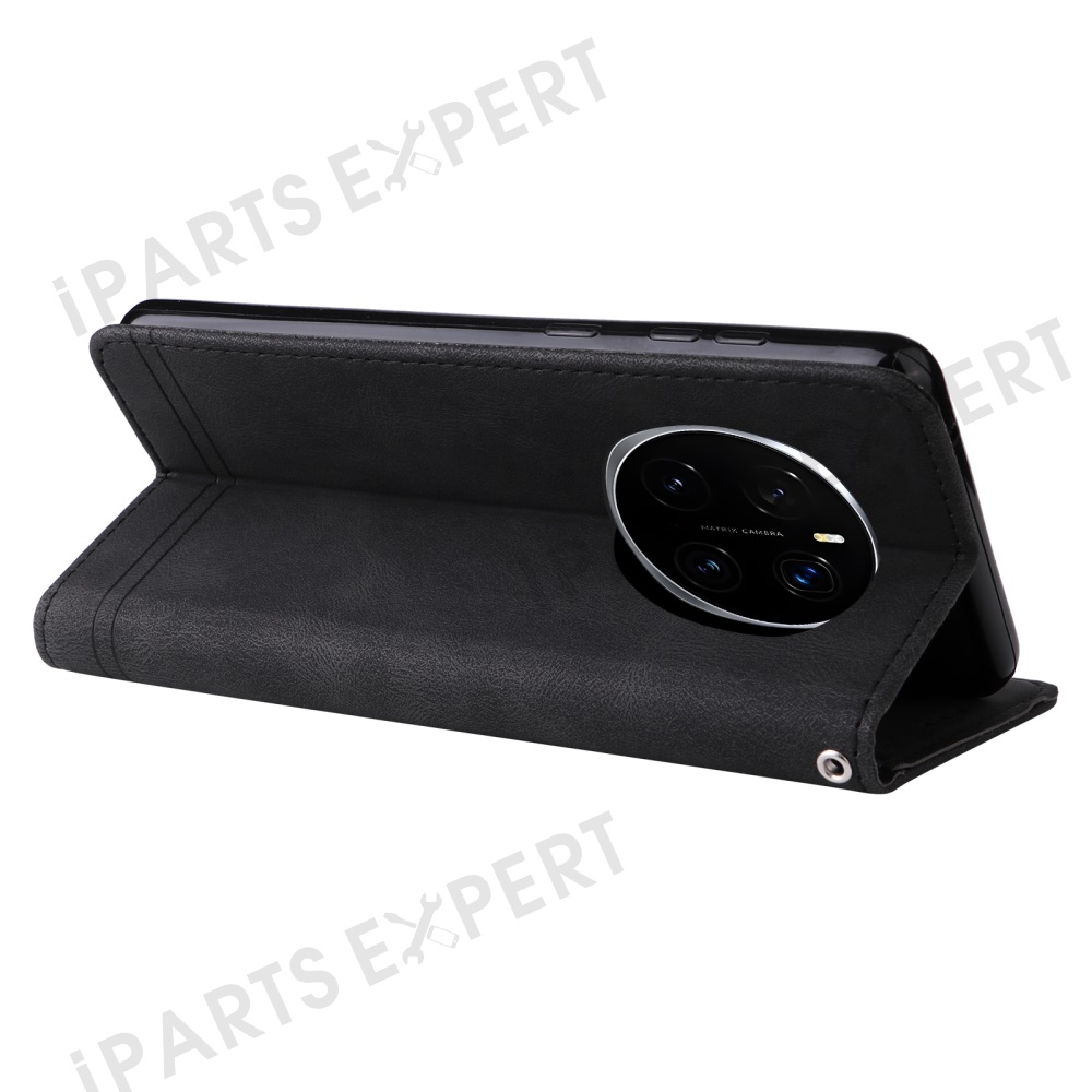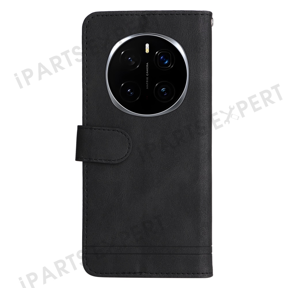 For Honor Magic7 Pro 5G Leather Wallet Cases Skin Touch Phone Cover Stand with Strap - Black