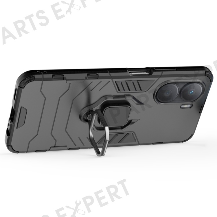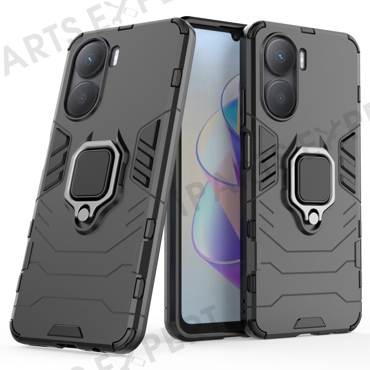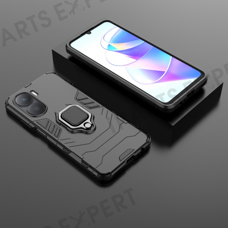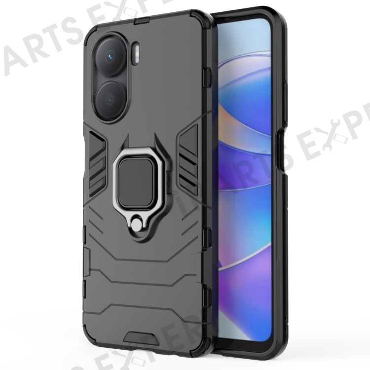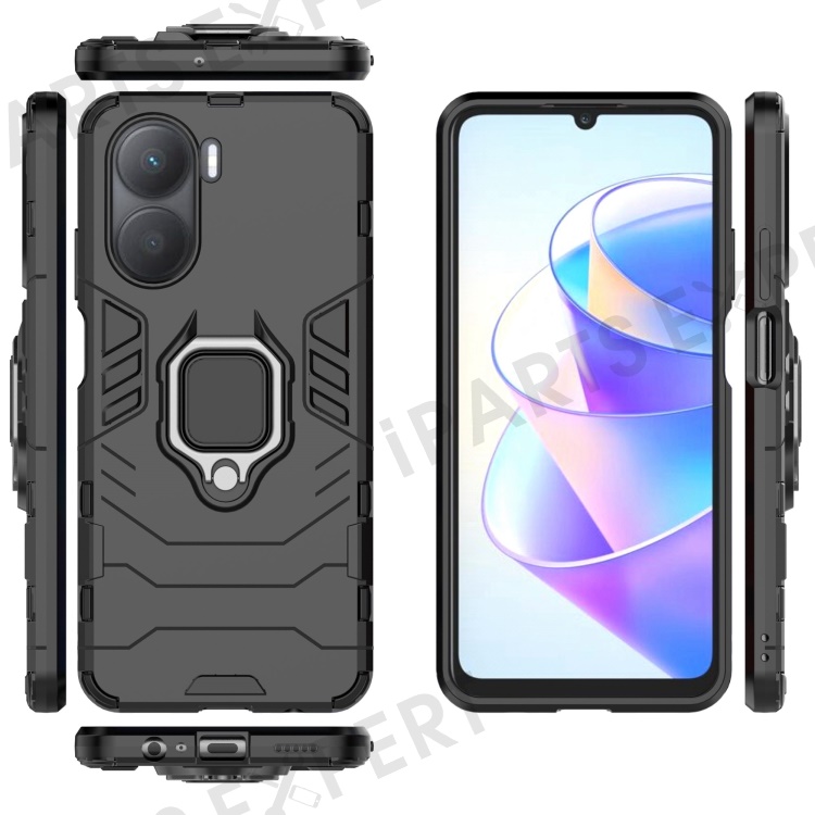 For Honor Play 40 Plus 5G Ring Holder Kickstand Phone Case Hard PC+Soft TPU Scratch-resistant Protective Back Cover - Black