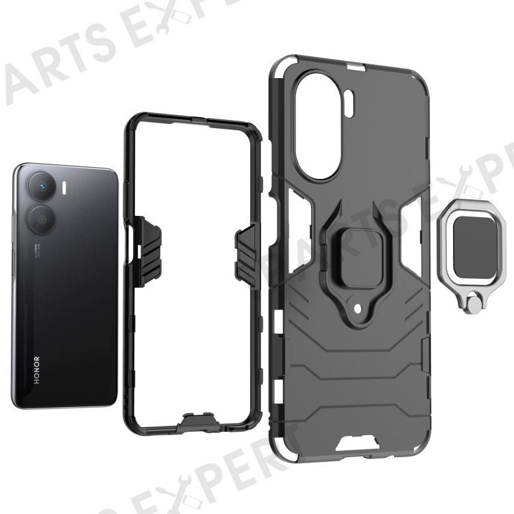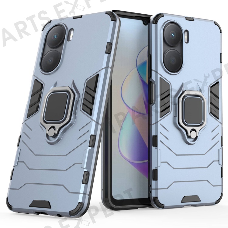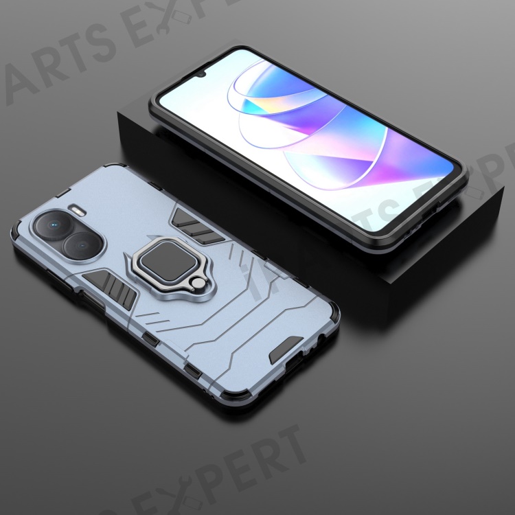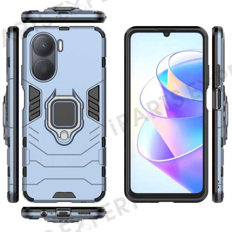 For Honor Play 40 Plus 5G Ring Holder Kickstand Phone Case Hard PC+Soft TPU Scratch-resistant Protective Back Cover - Blue