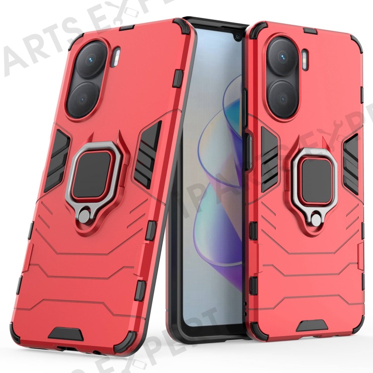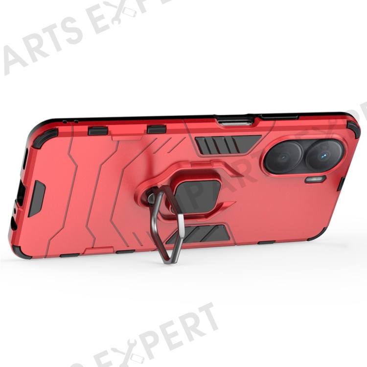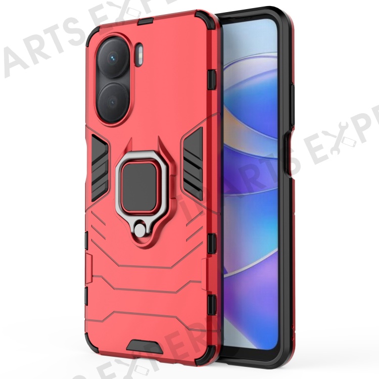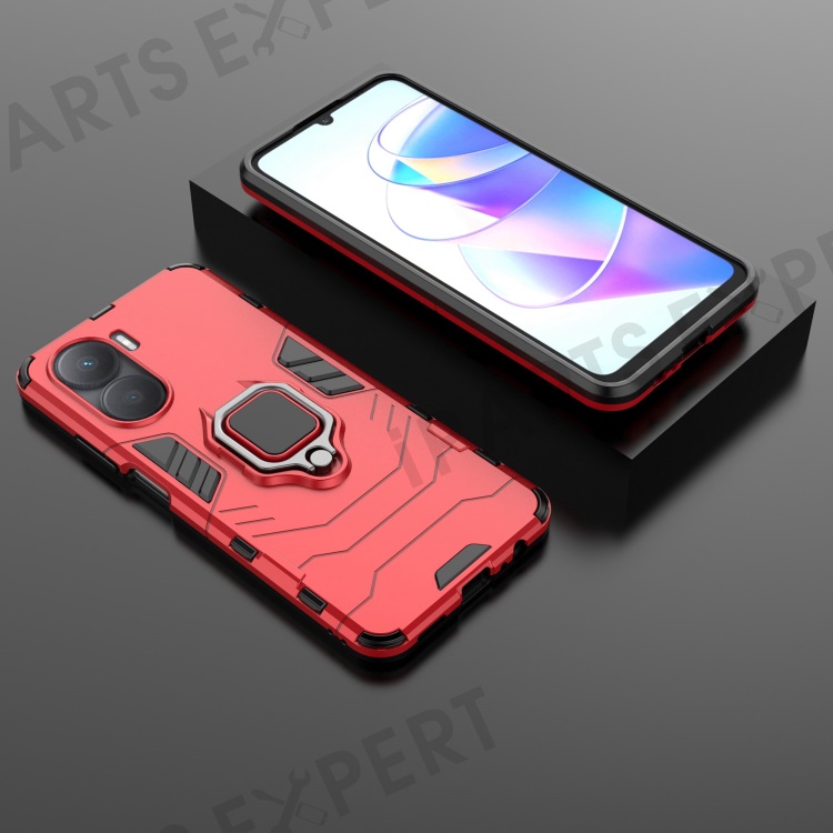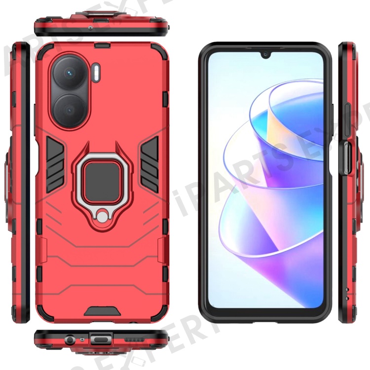 For Honor Play 40 Plus 5G Ring Holder Kickstand Phone Case Hard PC+Soft TPU Scratch-resistant Protective Back Cover - Red
