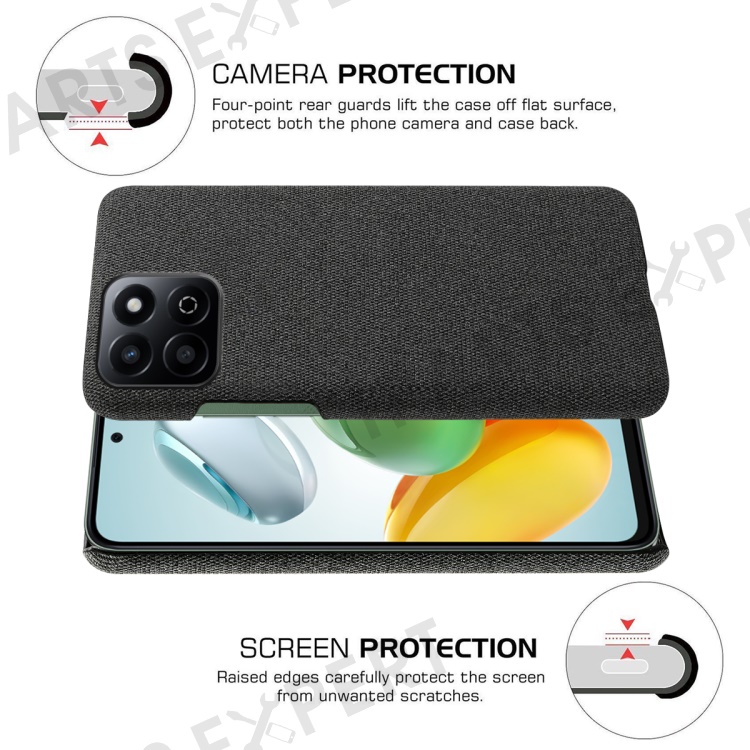 For Honor Play 60 Plus 5G Case Cloth Texture Anti-Scratch Protective PC Phone Cover - Black
