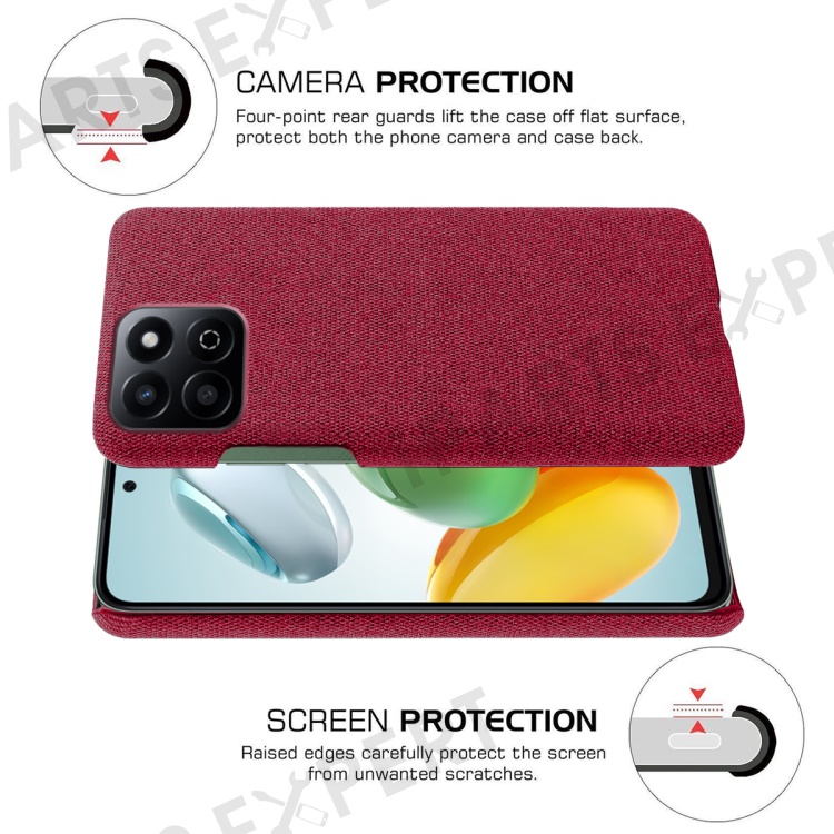 For Honor Play 60 Plus 5G Case Cloth Texture Anti-Scratch Protective PC Phone Cover - Red
