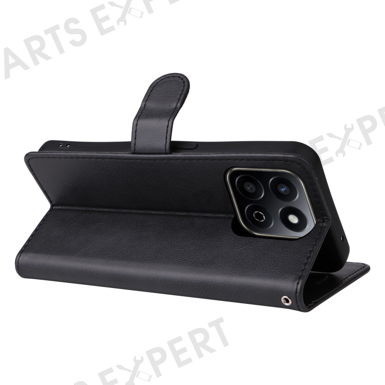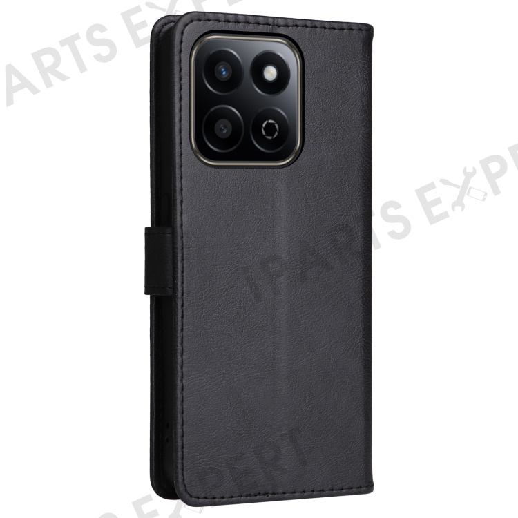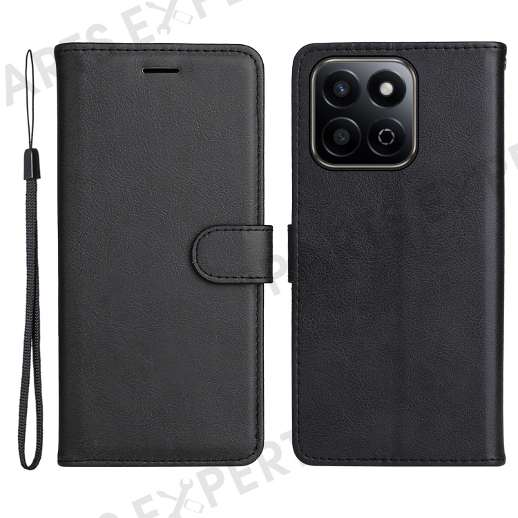 For Honor Play 60 Plus 5G / Play 9T / X7c 4G / 200 Smart 5G Case Solid Color Leather Mobile Cover Wallet Stand with Strap - Black