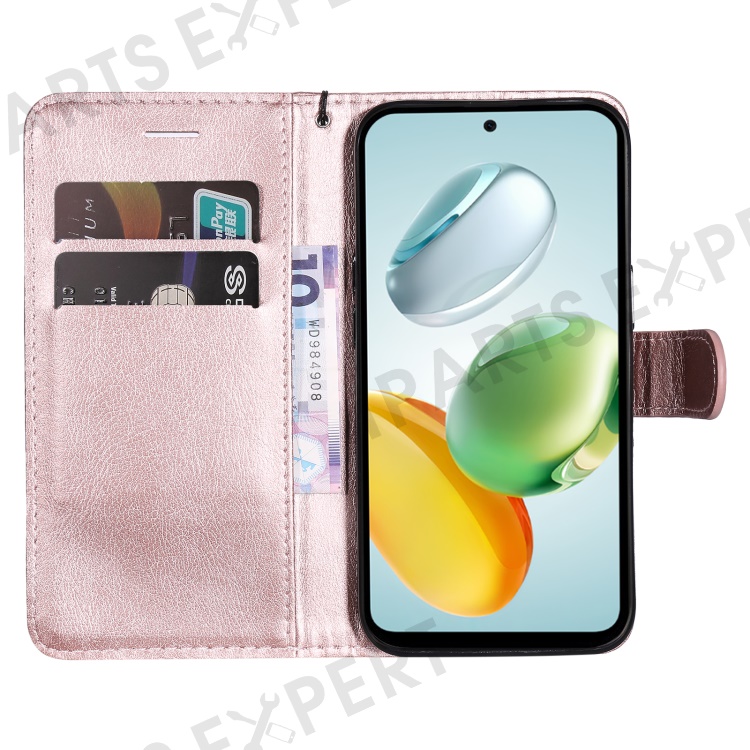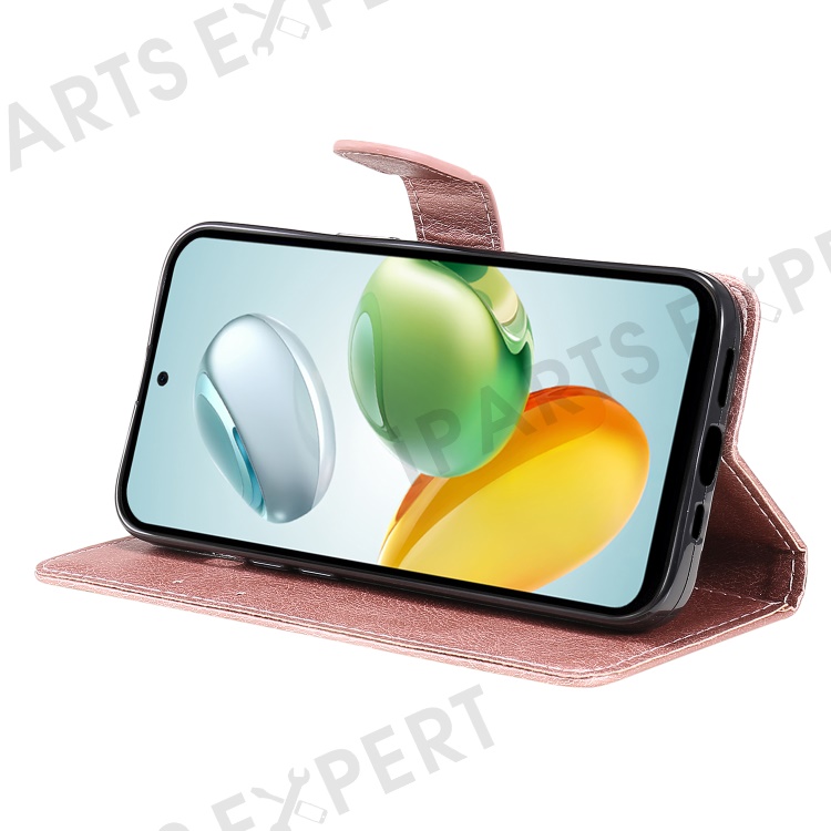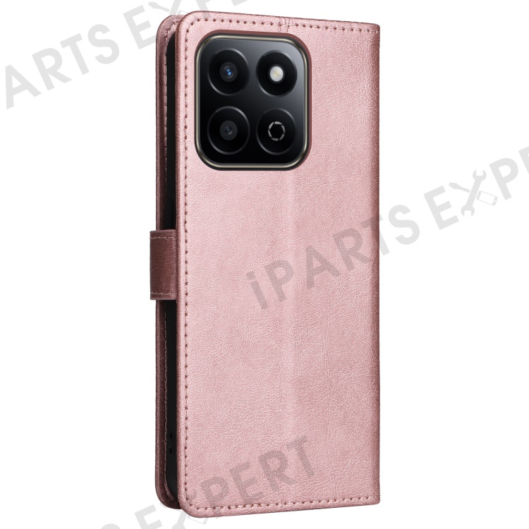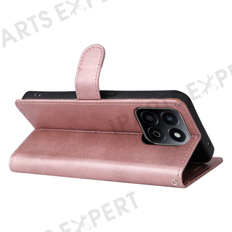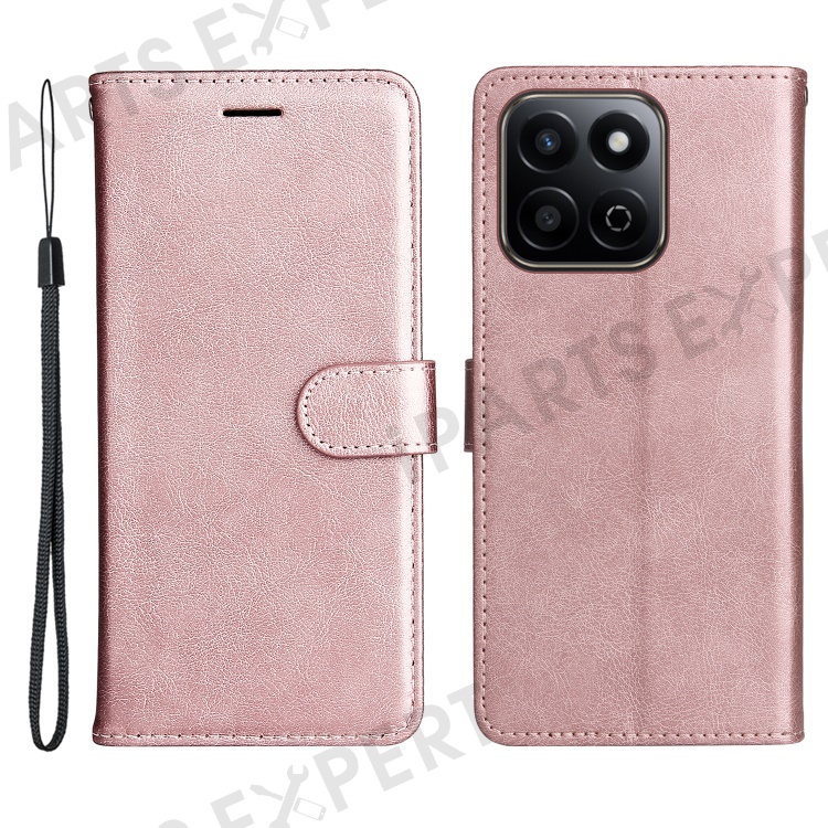 For Honor Play 60 Plus 5G / Play 9T / X7c 4G / 200 Smart 5G Case Solid Color Leather Mobile Cover Wallet Stand with Strap - Rose Gold