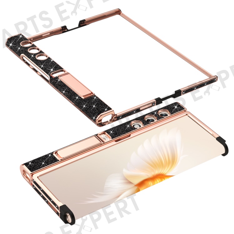 For Honor V Purse Case Glitter Hard PC Folding Phone Cover - Black