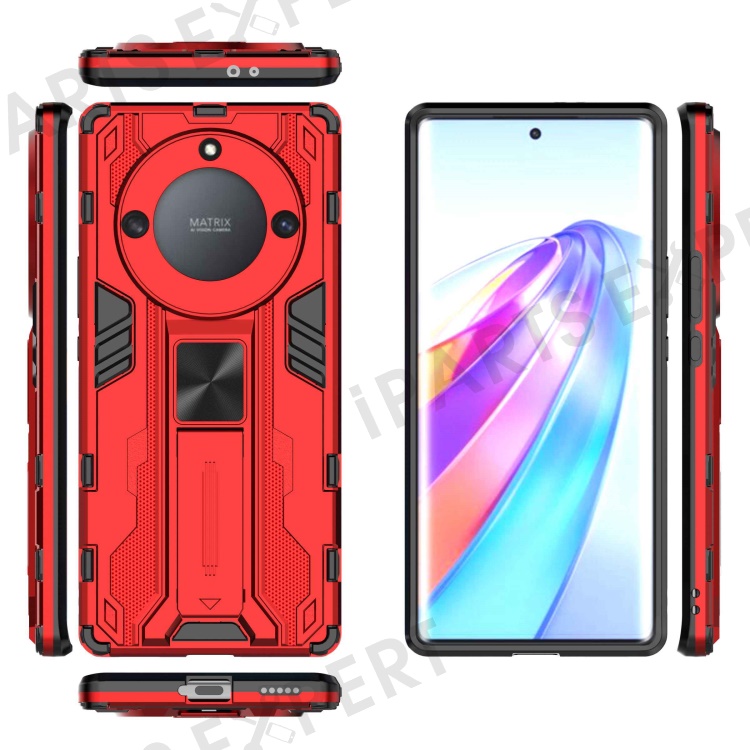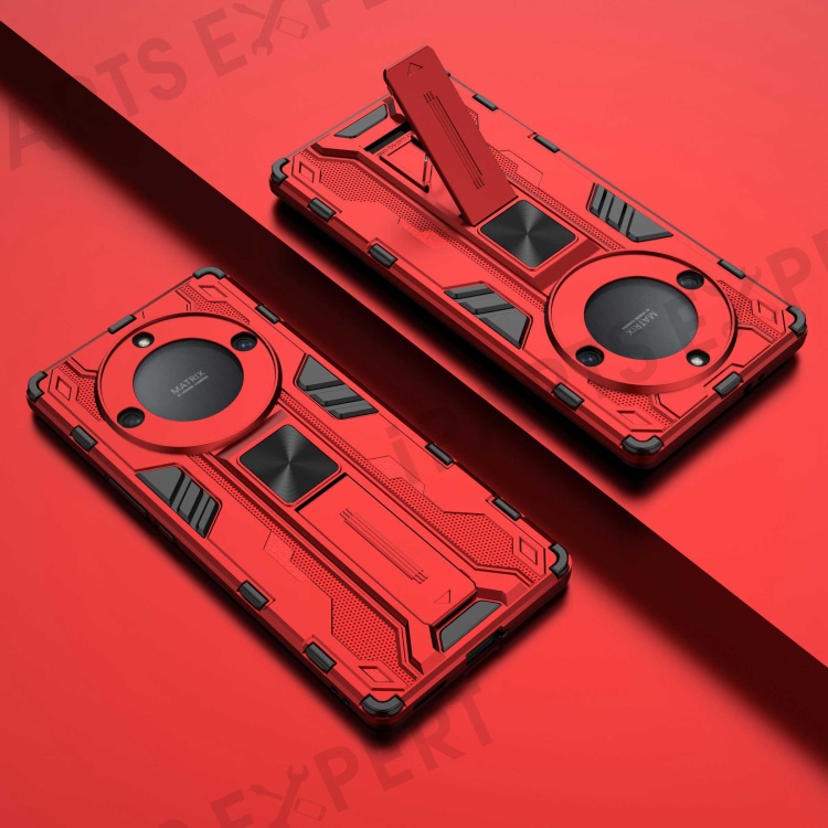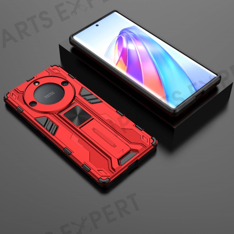 For Honor X40 5G Kickstand Protective Phone Case Drop-proof Hard PC Soft TPU Hybrid Cover - Red