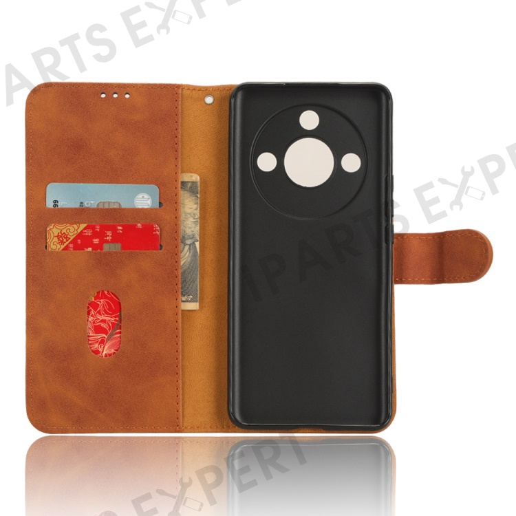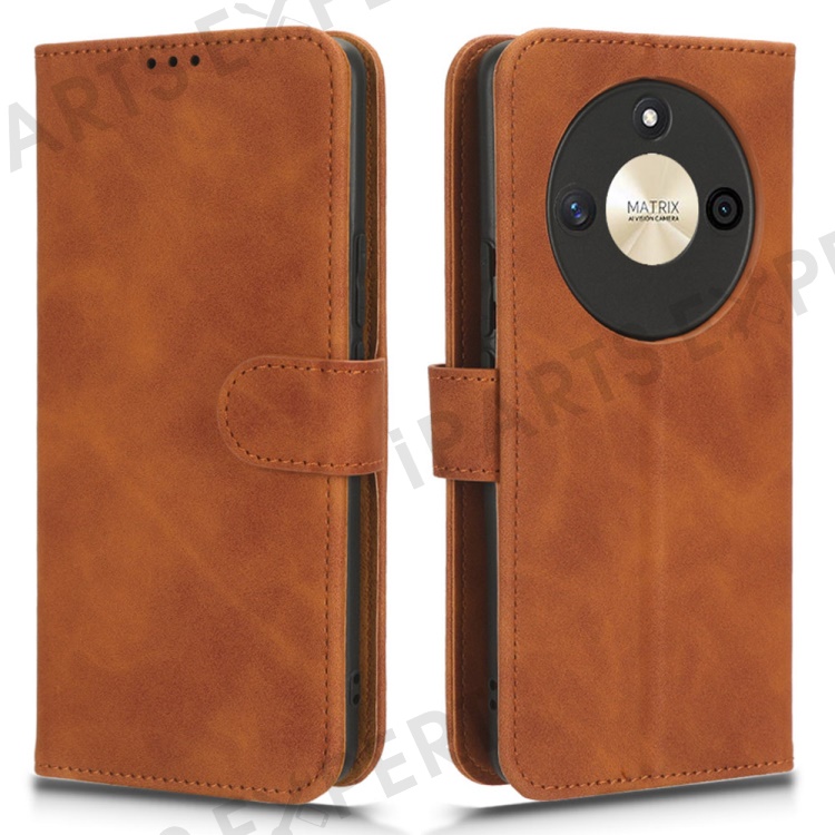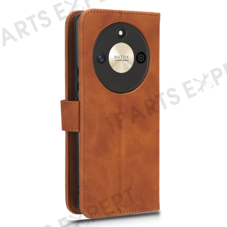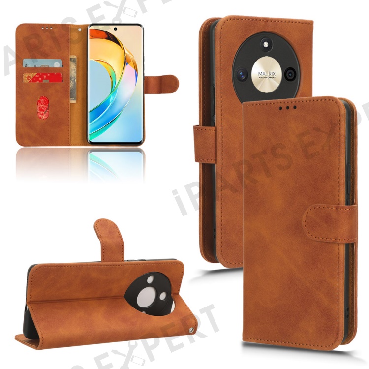 For Honor X50 Shockproof PU Leather Skin-touch Stand Case Wallet Anti-drop Inner TPU Phone Cover - Brown