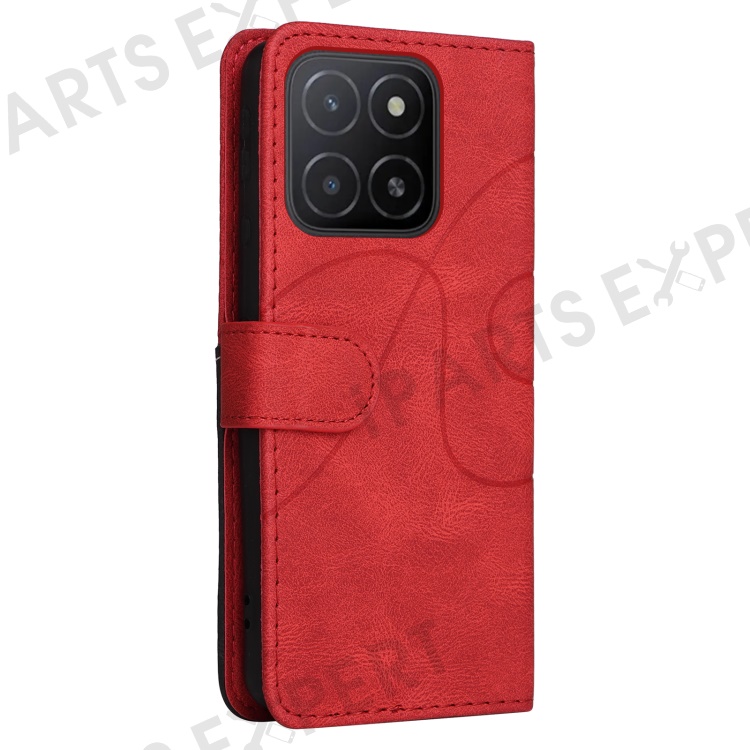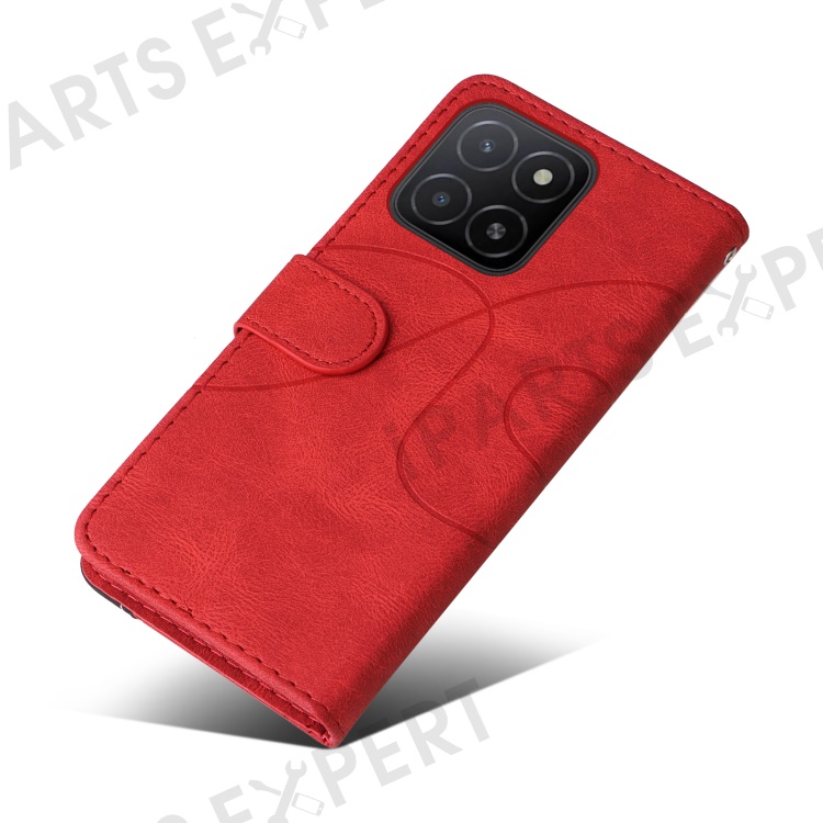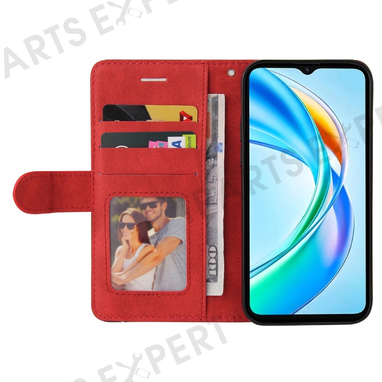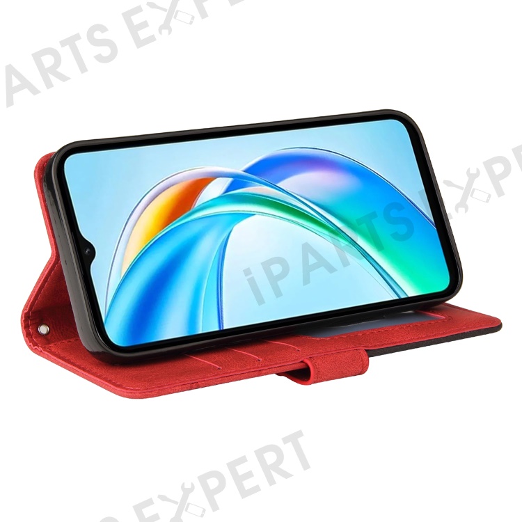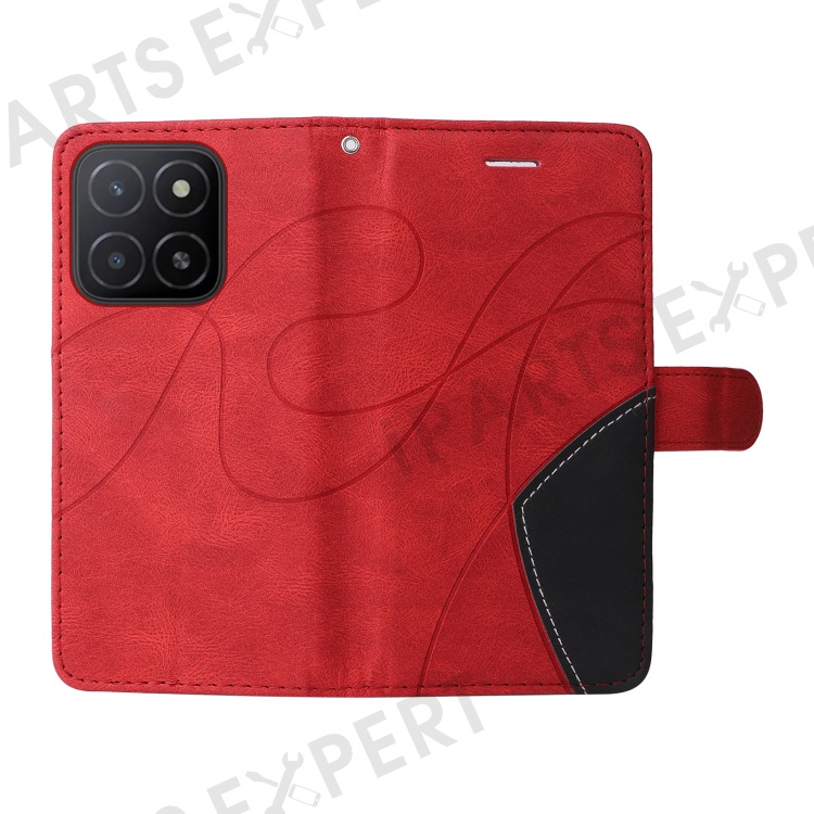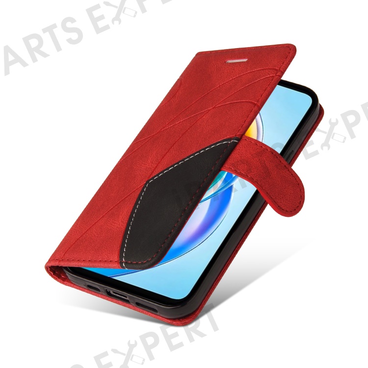 For Honor X5b / X5b Plus Leather Case Wallet Stand Color Splicing Phone Cover - Red