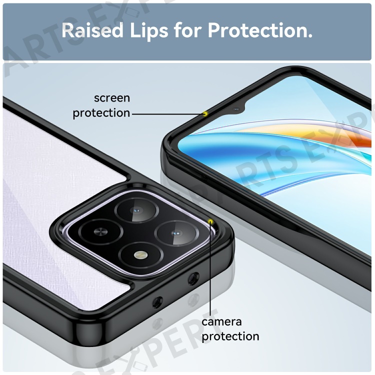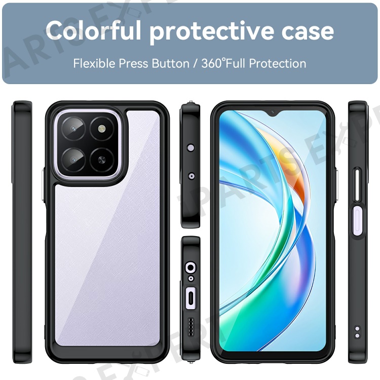 For Honor X5b / X5b Plus / X6a 4G / X6b 4G Case TPU+Acrylic Protective Clear Phone Cover - Black