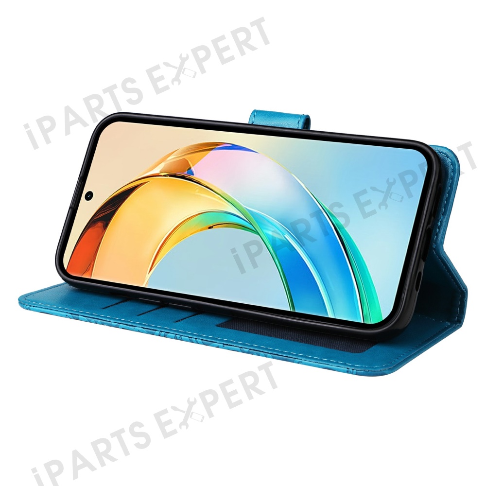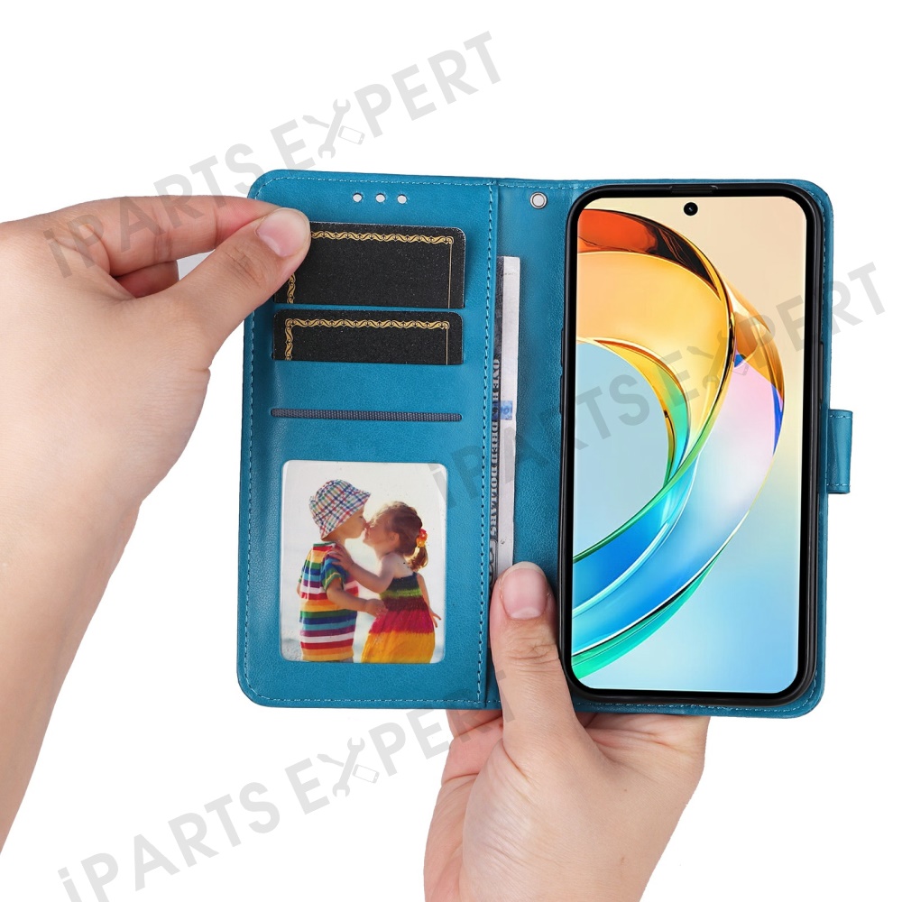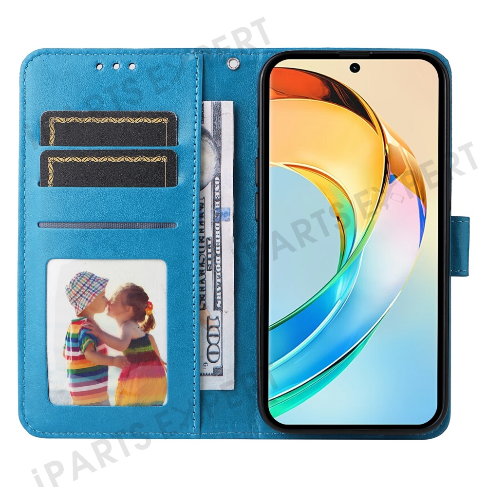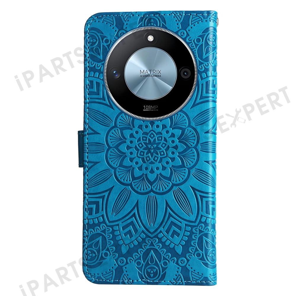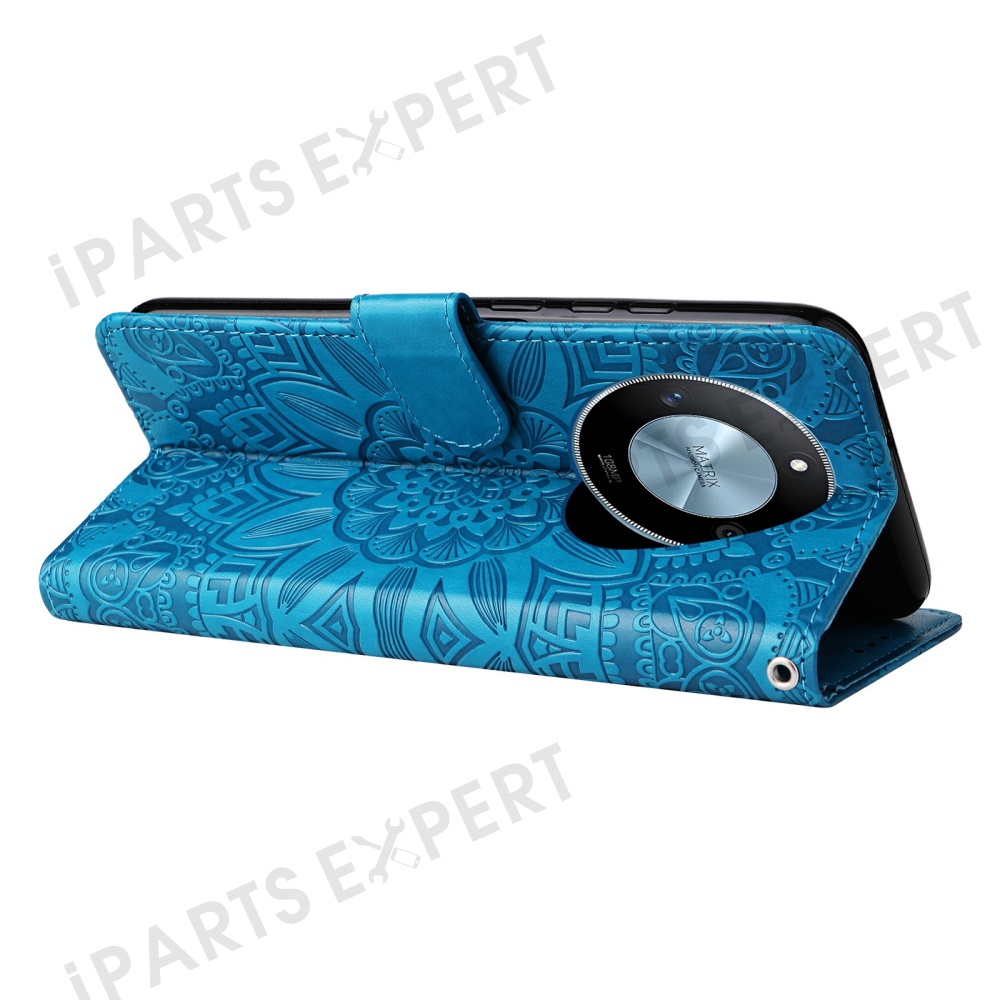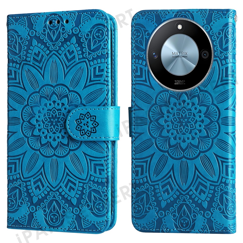 For Honor X60 5G Case Sunflower Imprint Leather Wallet Phone Cover - Blue