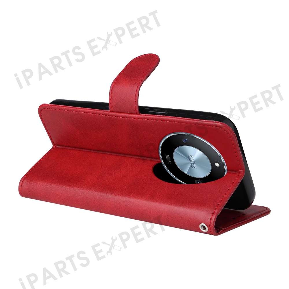 For Honor X60 5G Case Wallet PU Leather Folio Flip Phone Cover - Red