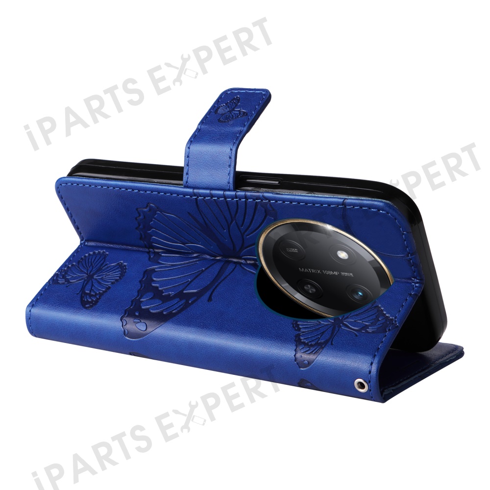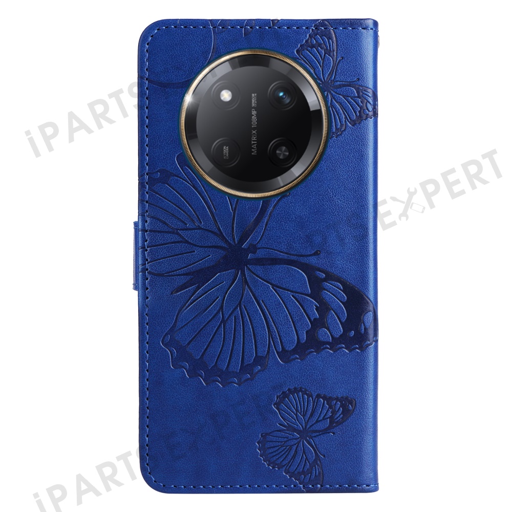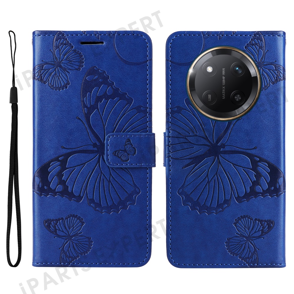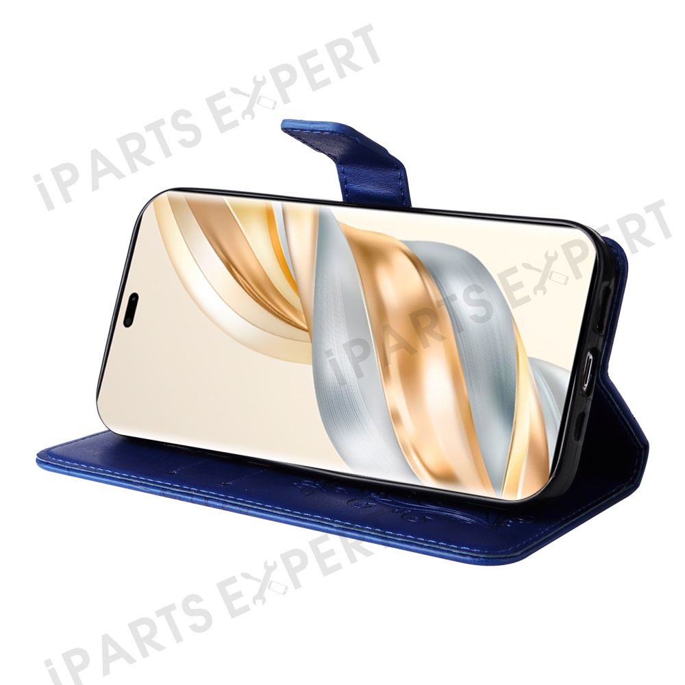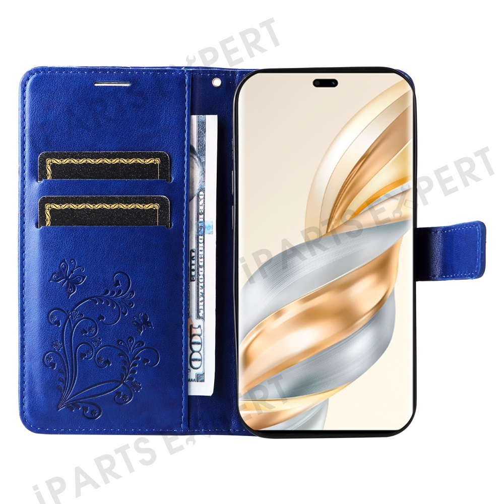 For Honor X60 Pro 5G / Magic7 Lite 5G / X9c 5G Wallet Case Floral Butterfly Imprinted Leather Phone Cover Stand - Blue
