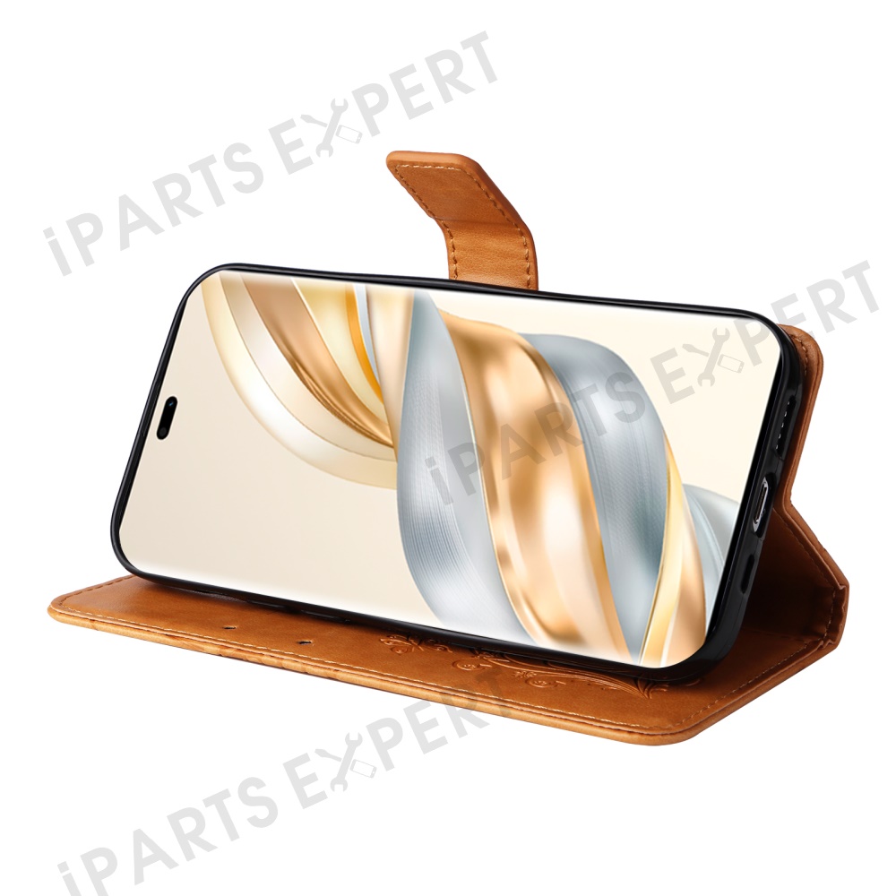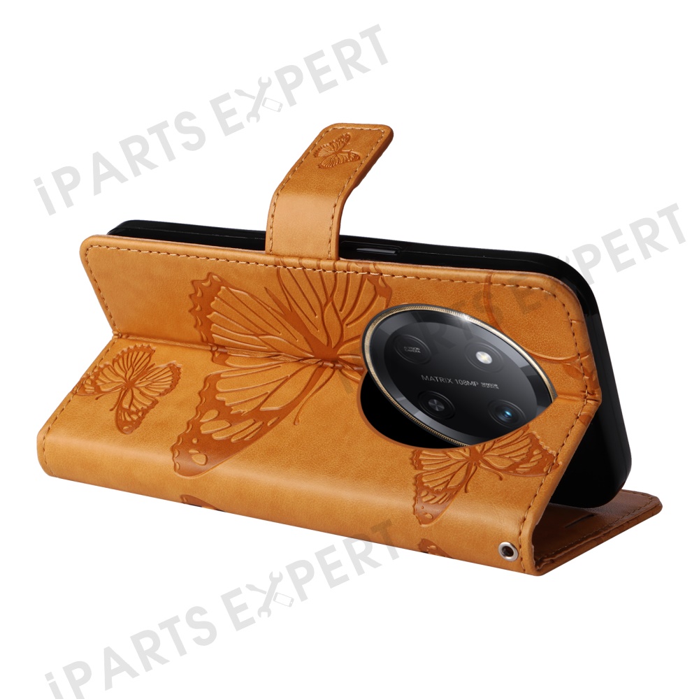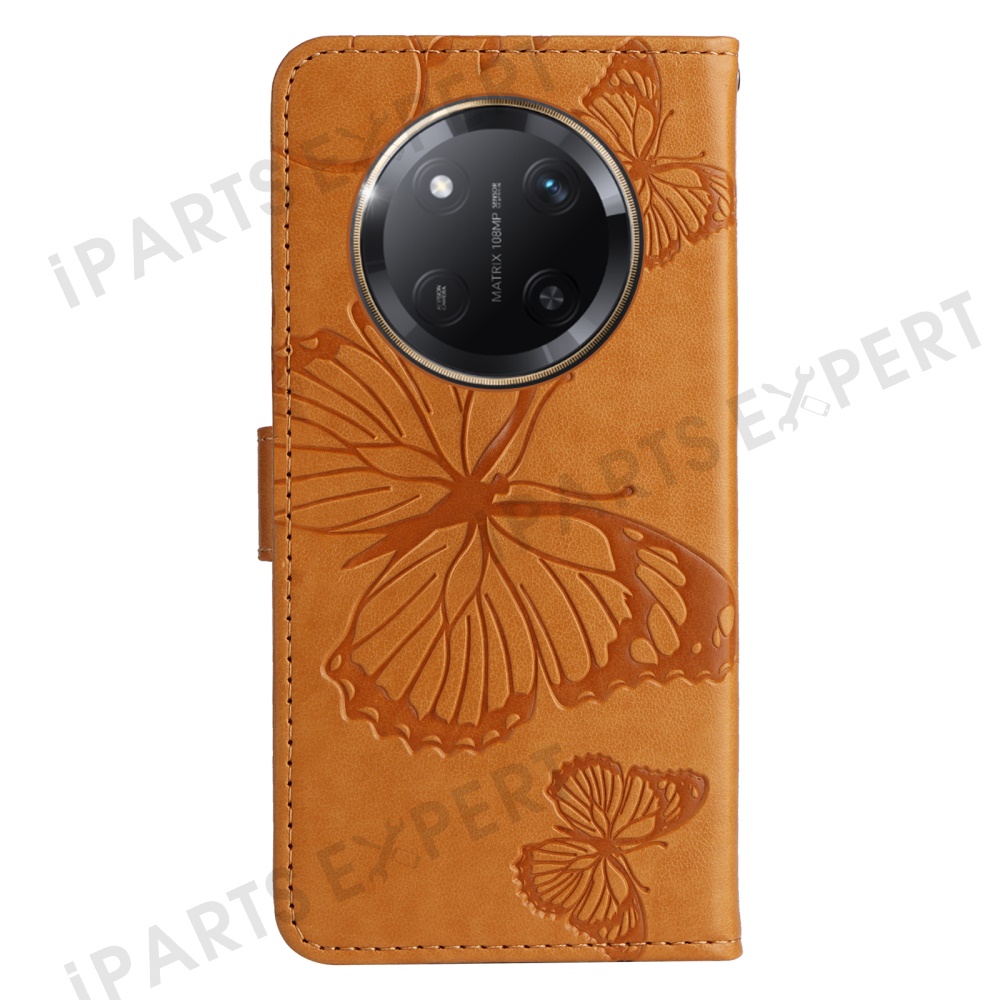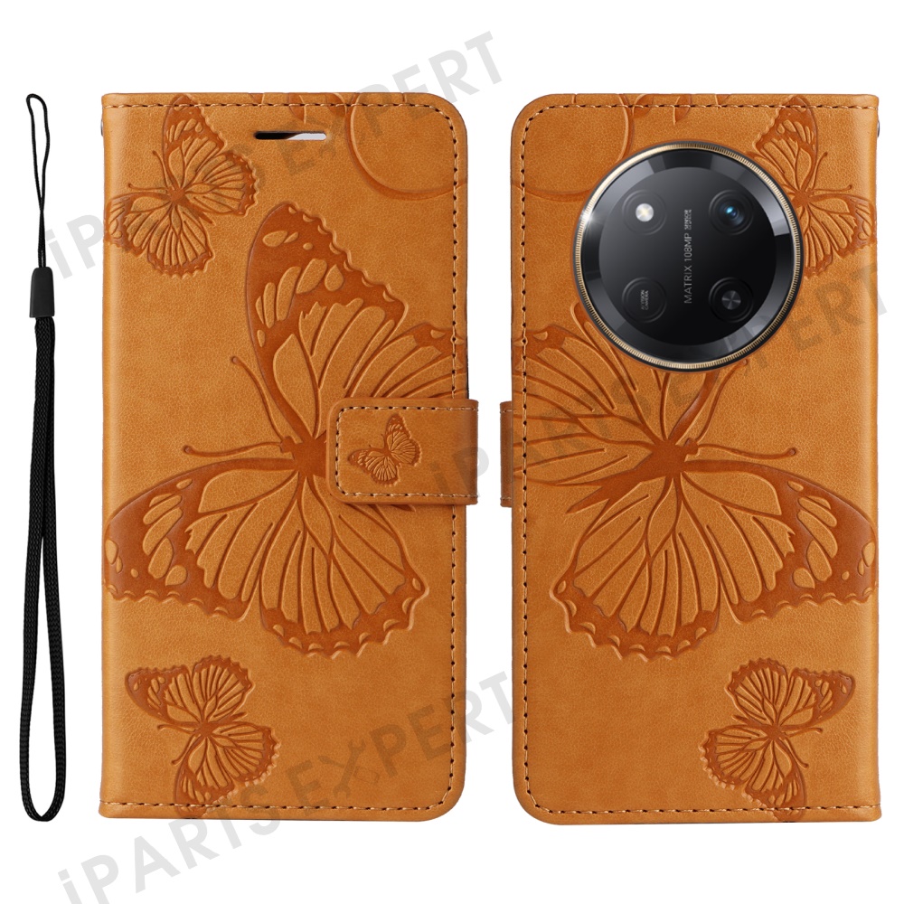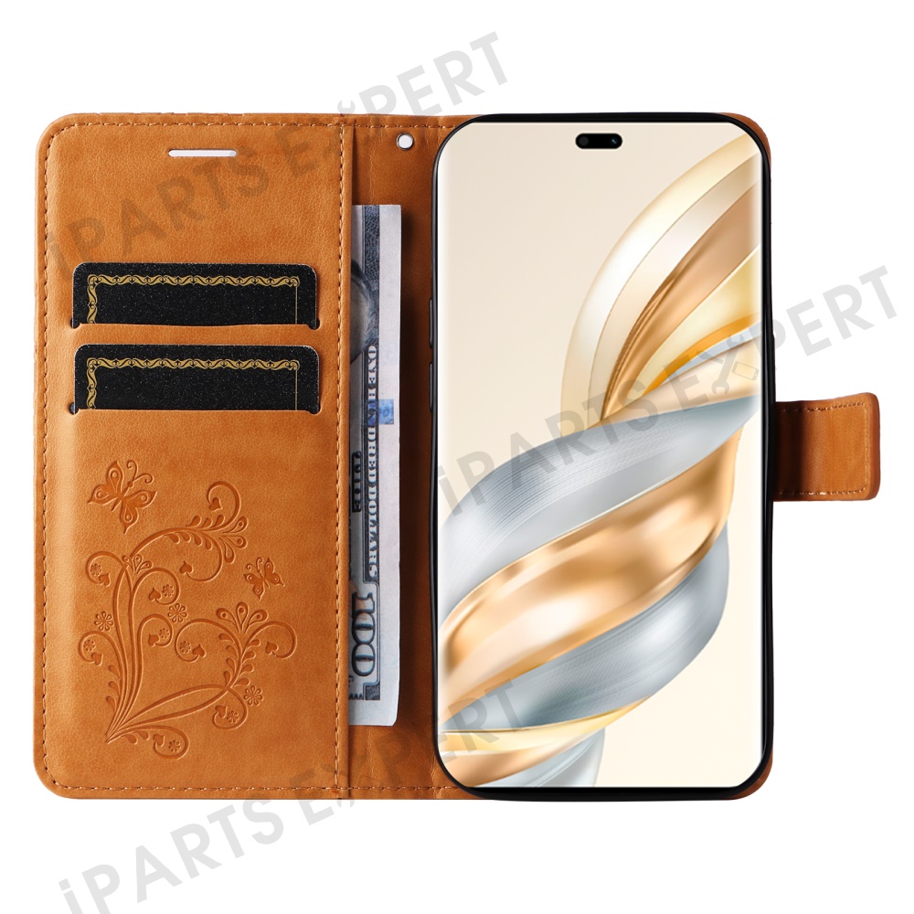For Honor X60 Pro 5G / Magic7 Lite 5G / X9c 5G Wallet Case Floral Butterfly Imprinted Leather Phone Cover Stand - Yellow