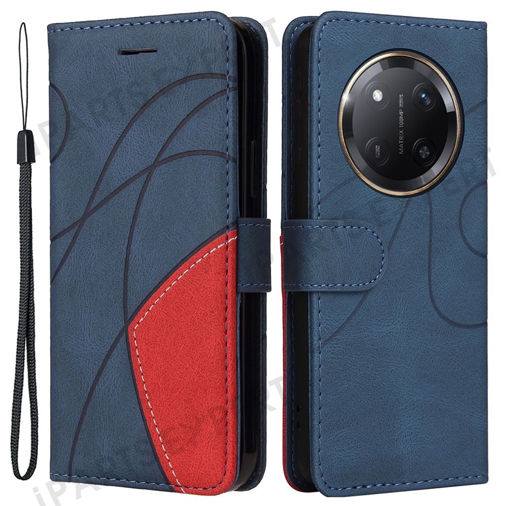For Honor X60 Pro 5G / Magic7 Lite 5G / X9c 5G Leather Case Wallet Stand Color Splicing Phone Cover - Blue