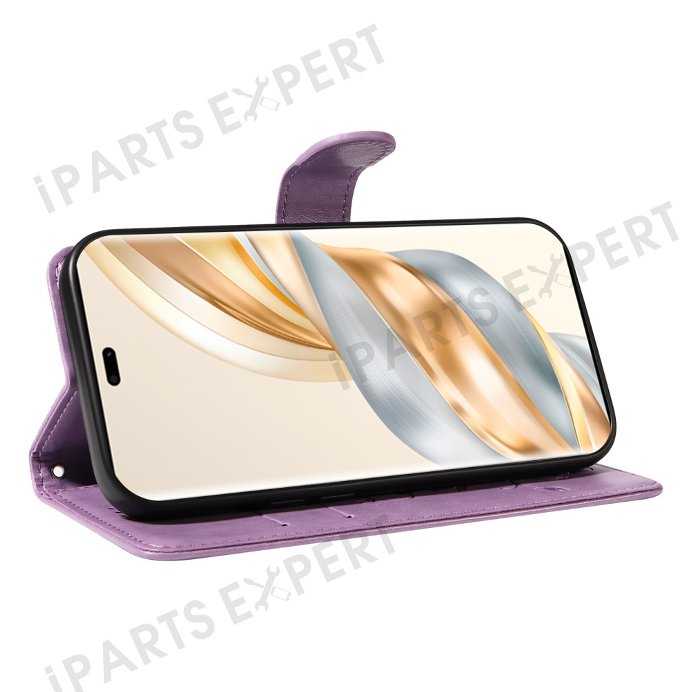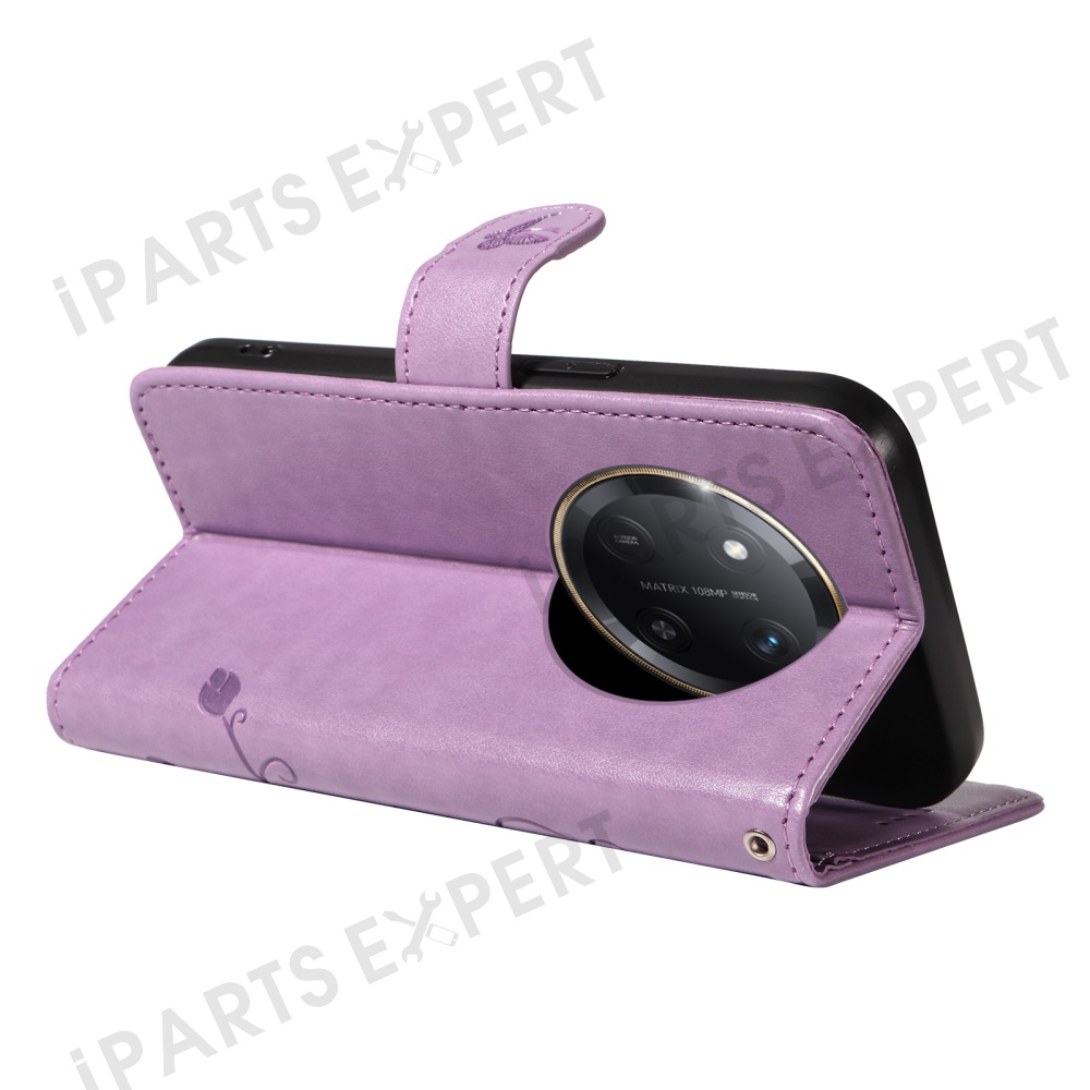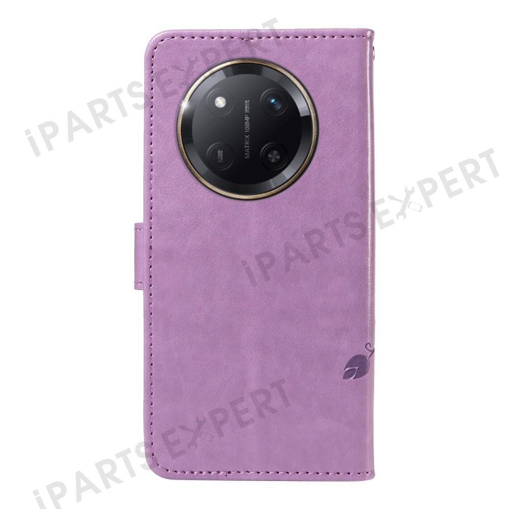For Honor X60 Pro 5G / Magic7 Lite 5G / X9c 5G PU Leather Cases Flower Pattern Wallet Stand Phone Cover with Strap - Light Purple