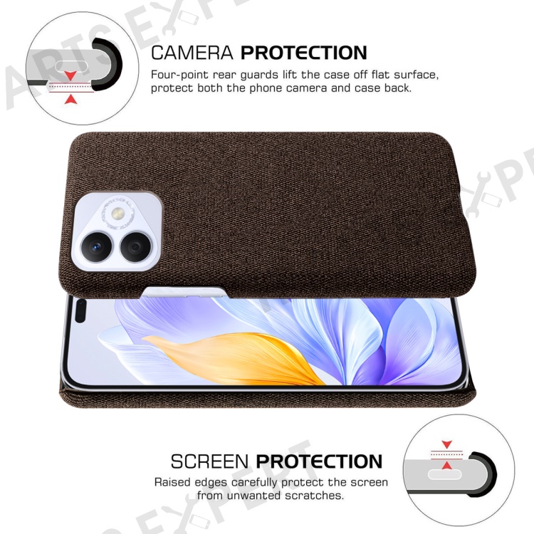 For Honor X60i 5G Case Cloth Texture Anti-Scratch Protective PC Phone Cover - Brown