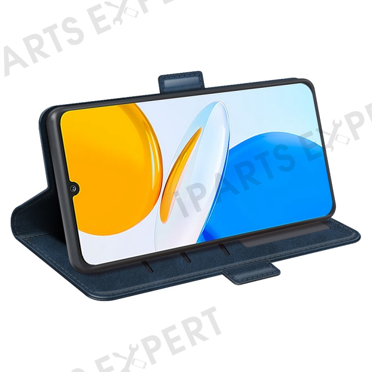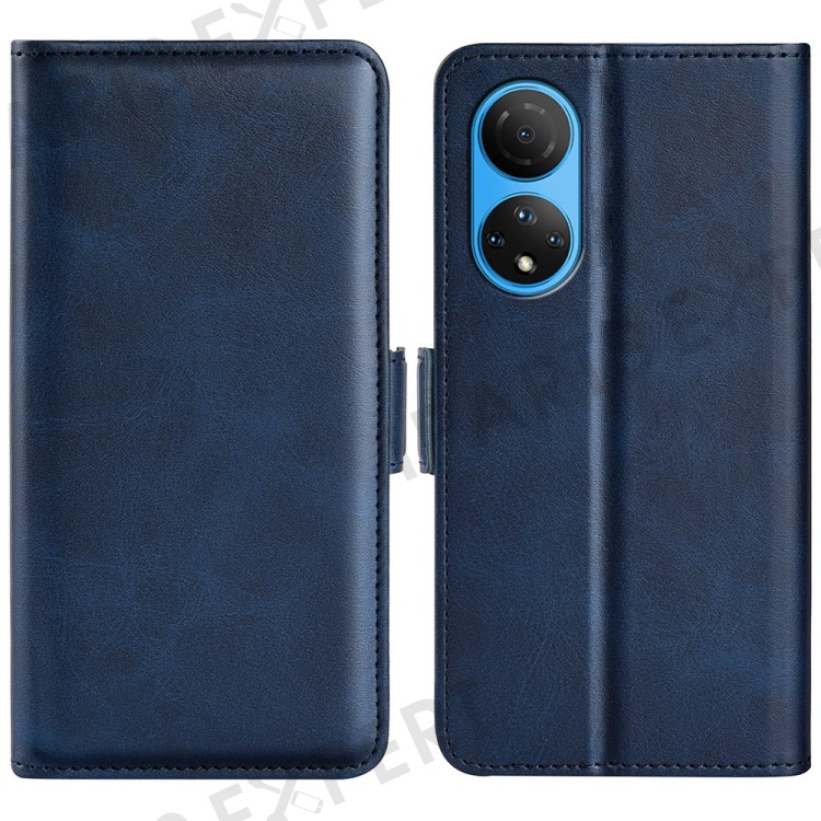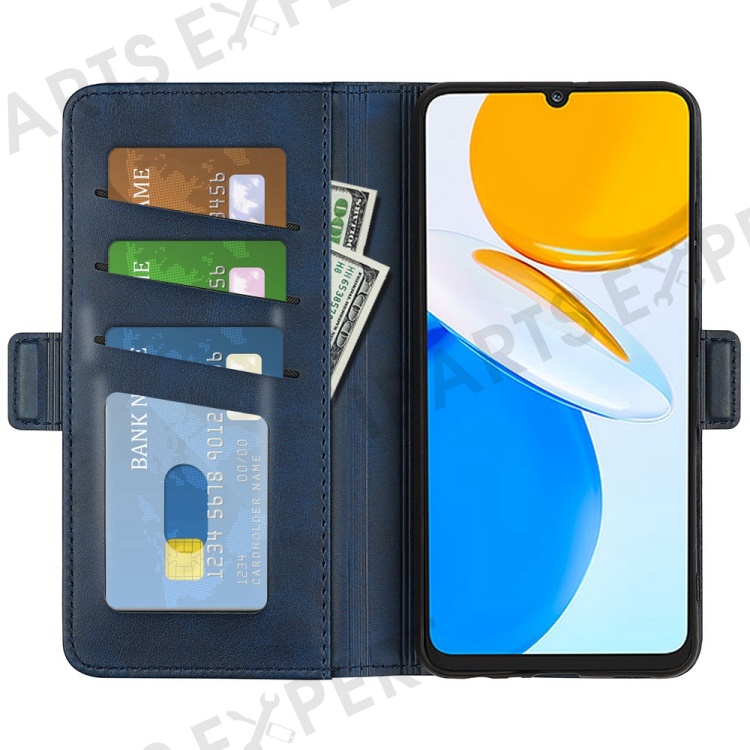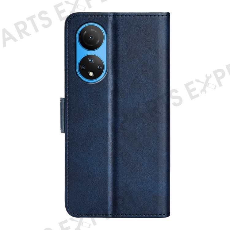 For Honor X7 Dual Clasp Textured PU Leather Phone Case Anti-drop Protective Cover with Stand Wallet - Blue