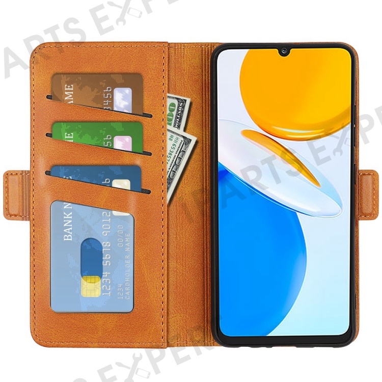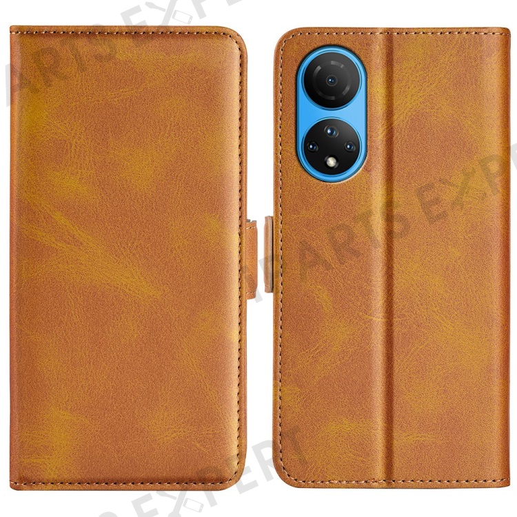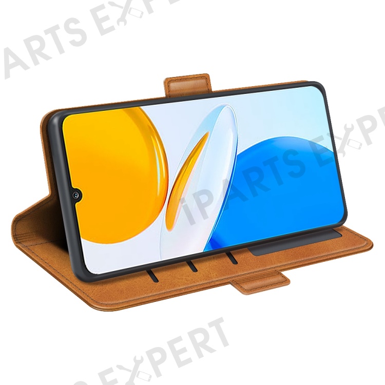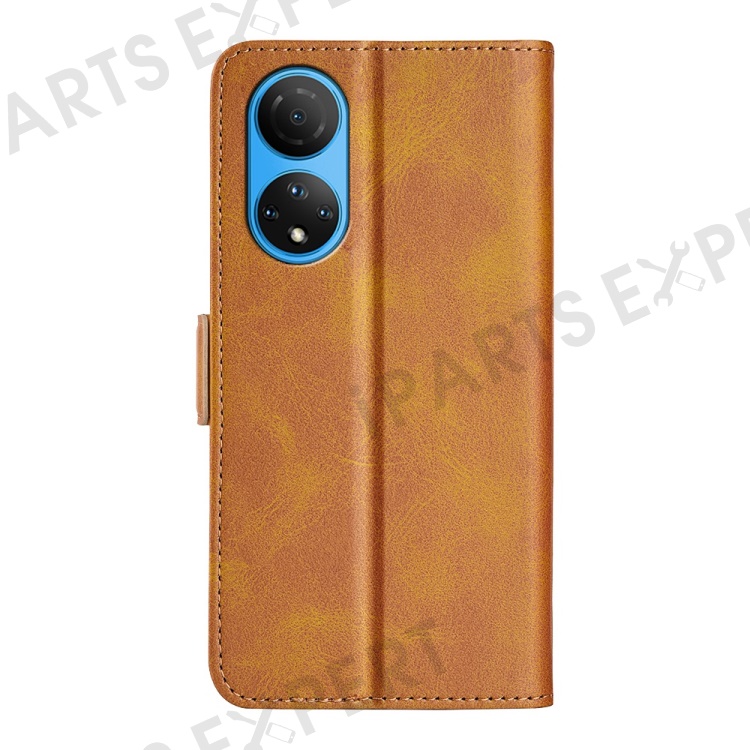 For Honor X7 Dual Clasp Textured PU Leather Phone Case Anti-drop Protective Cover with Stand Wallet - Yellow