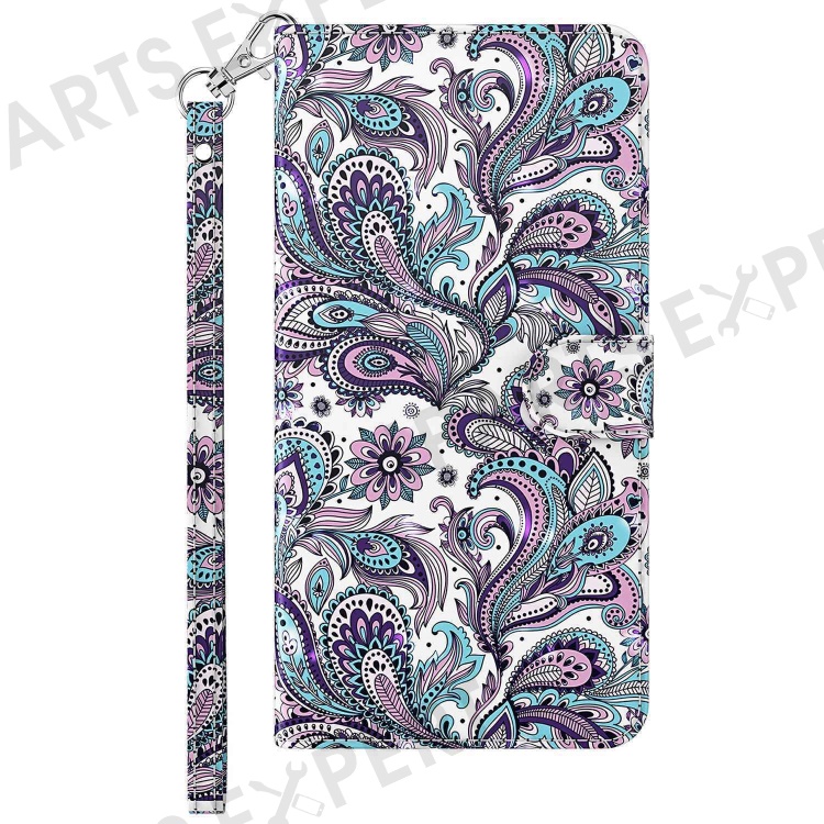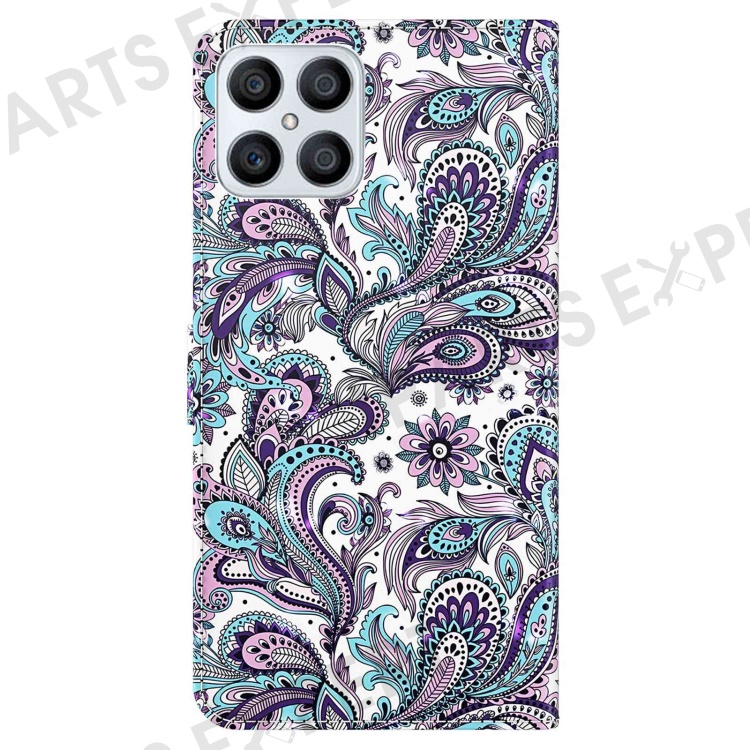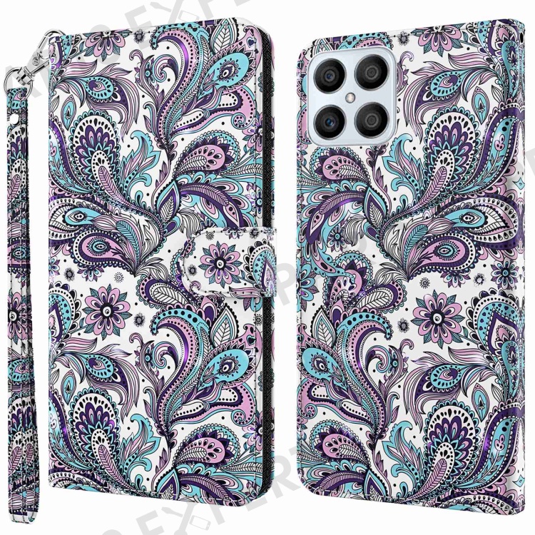 For Honor X8 4G 4G PU Leather Folio Flip Wallet Phone Case Stand Function 3D Creative Pattern Printed Design Full-Body Protective Cover with Strap - Purple Impatiens