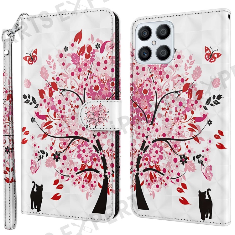 For Honor X8 4G 4G PU Leather Folio Flip Wallet Phone Case Stand Function 3D Creative Pattern Printed Design Full-Body Protective Cover with Strap - Wish Tree