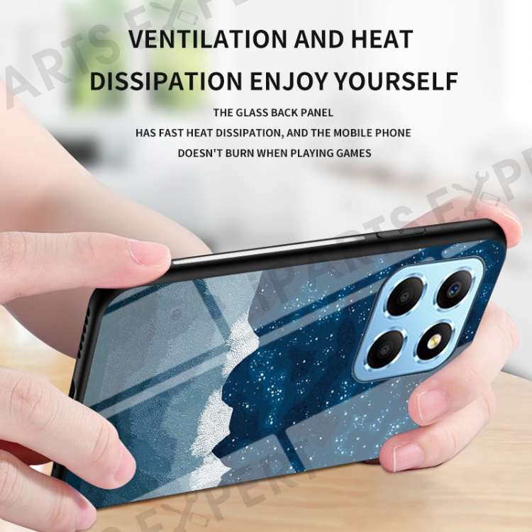 For Honor X8 5G Air-bag Anti-fall Phone Case Starry Sky Pattern Tempered Glass+PC+TPU Back Cover - Cosmic Starry Sky
