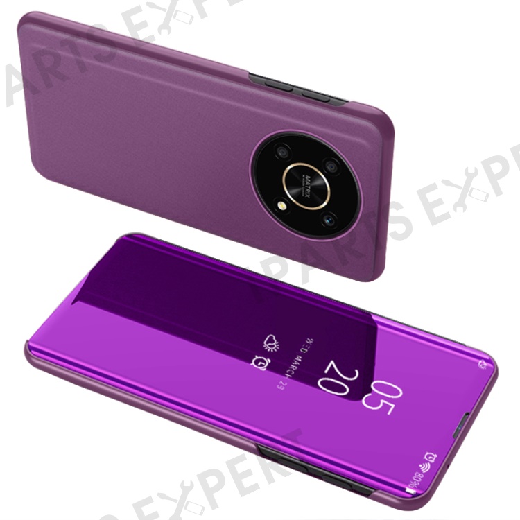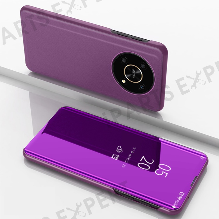 For Honor X9 5G/X30 5G/Magic4 Lite 5G Foldable Stand Design PU Leather Case View Window Electroplate Mirror Wear-resistant Phone Shell - Purple