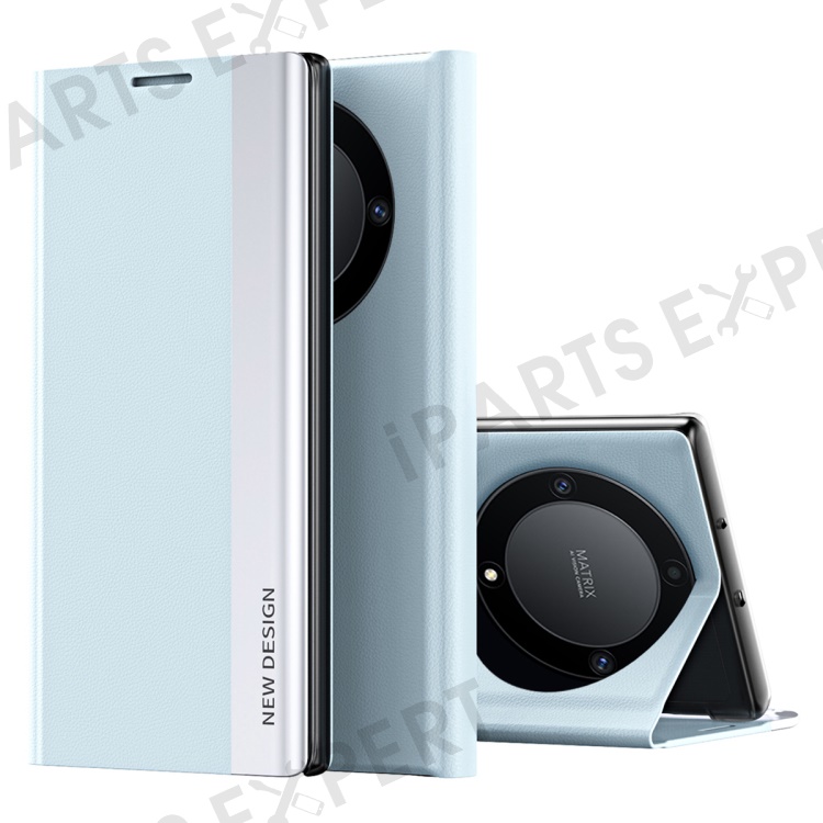For Honor X9a 5G / Magic5 Lite 5G Electroplating PU Leather Flip Stand Phone Cover Phone Case - Baby Blue