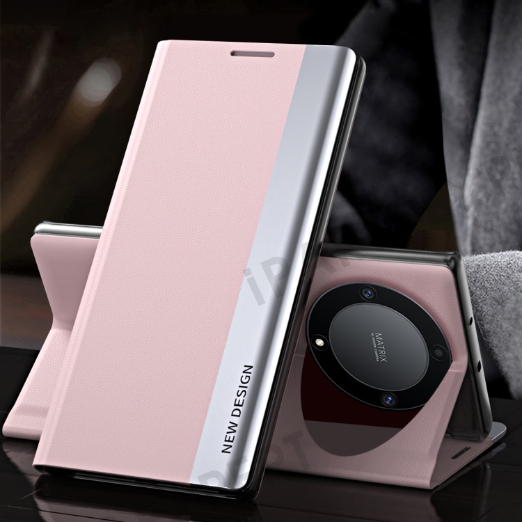 For Honor X9a 5G / Magic5 Lite 5G Electroplating PU Leather Flip Stand Phone Cover Phone Case - Pink