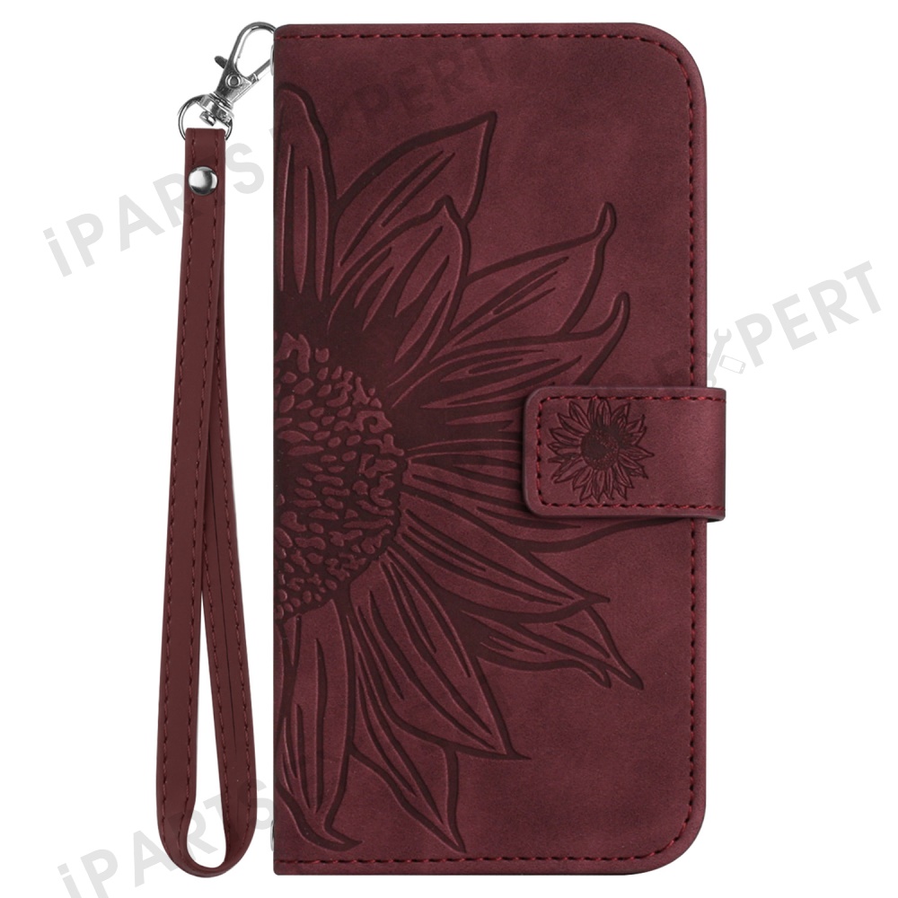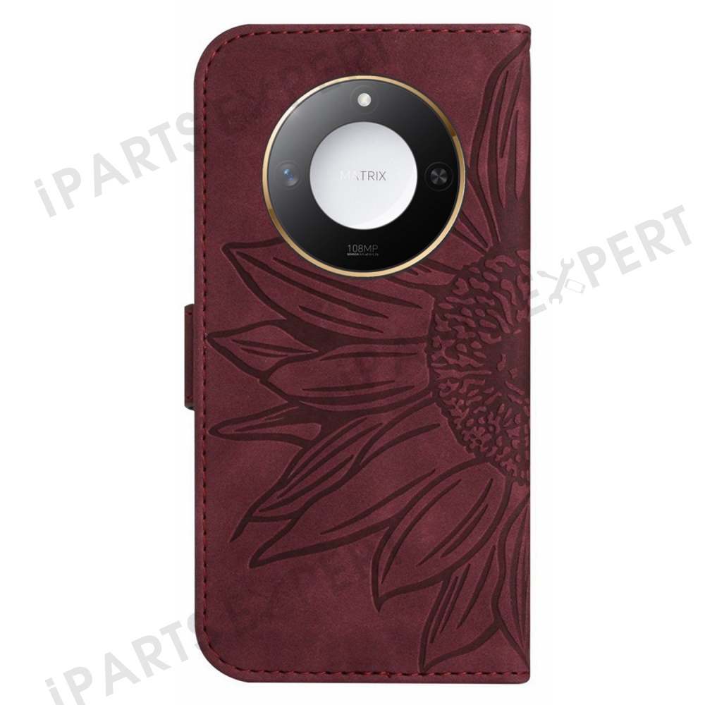 For Honor X9c Smart 5G Case Sunflower Imprint Leather Wallet Phone Cover with Wrist Strap - Wine Red