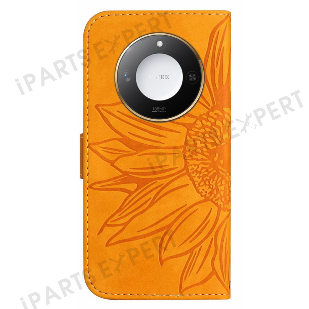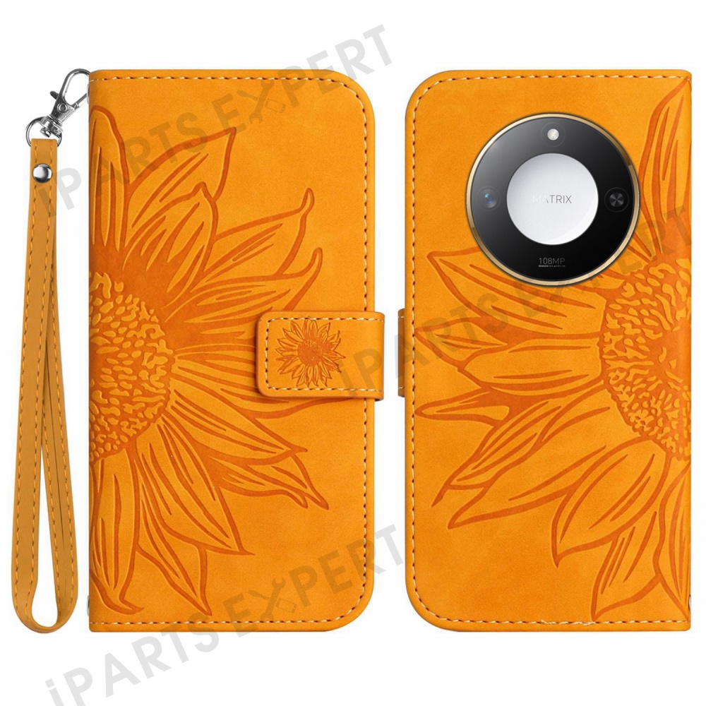For Honor X9c Smart 5G Case Sunflower Imprint Leather Wallet Phone Cover with Wrist Strap - Yellow