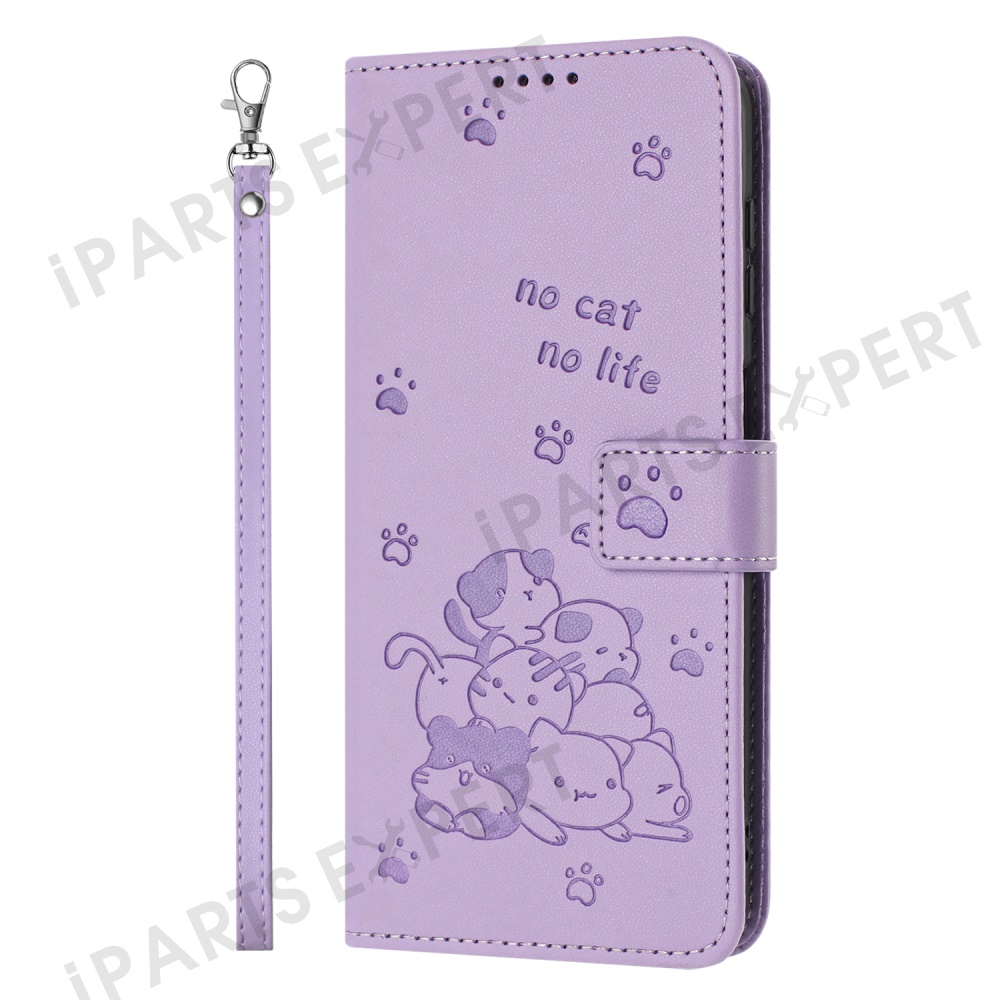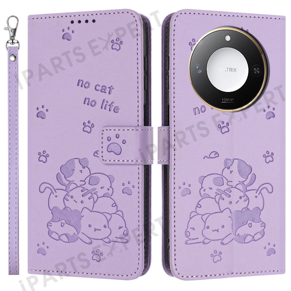 For Honor X9c Smart 5G / X60 5G Case with Strap Cats Imprint Leather Wallet Phone Cover - Purple