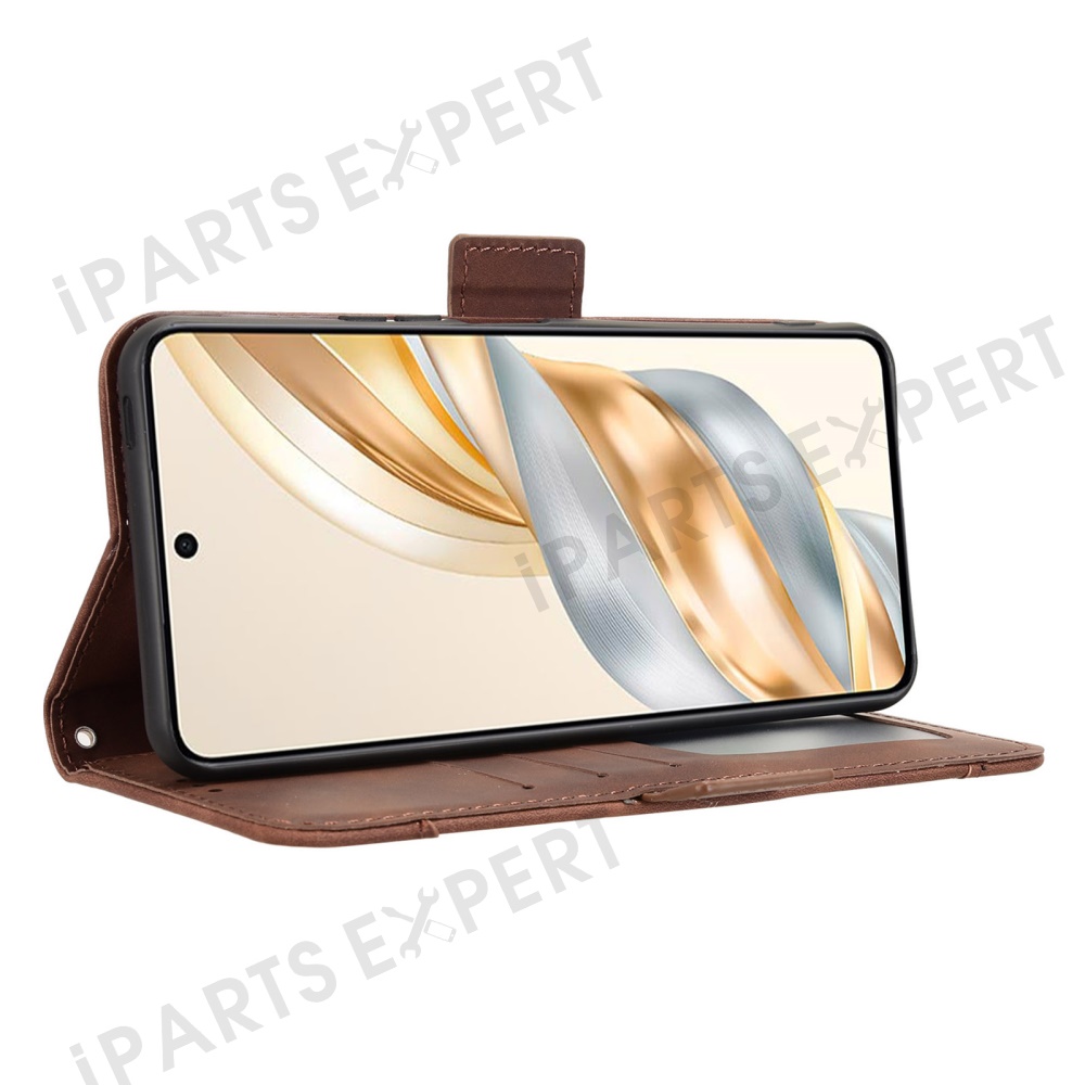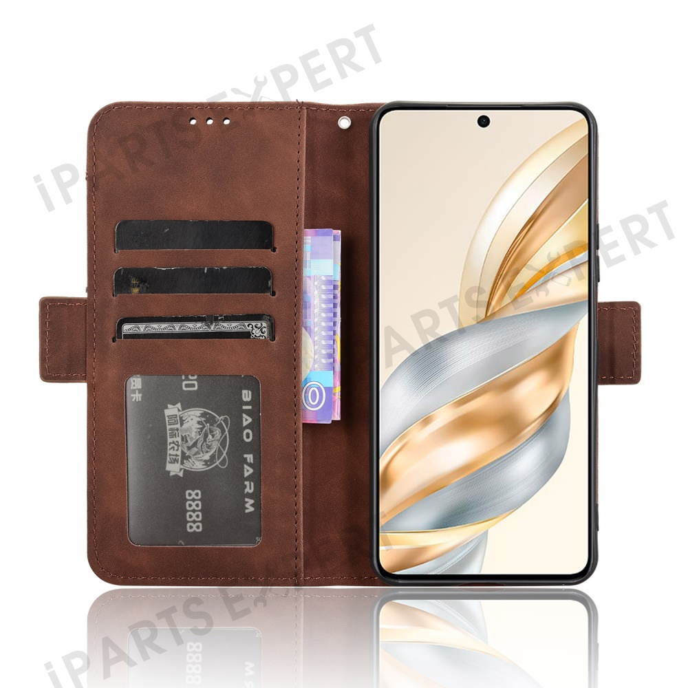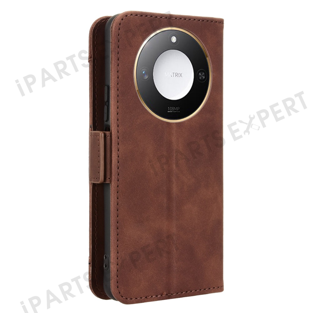 For Honor X9c Smart 5G / X60 5G Leather Case Phone Wallet Cover with Multiple Card Slots - Brown