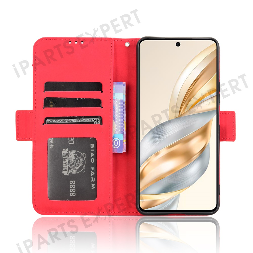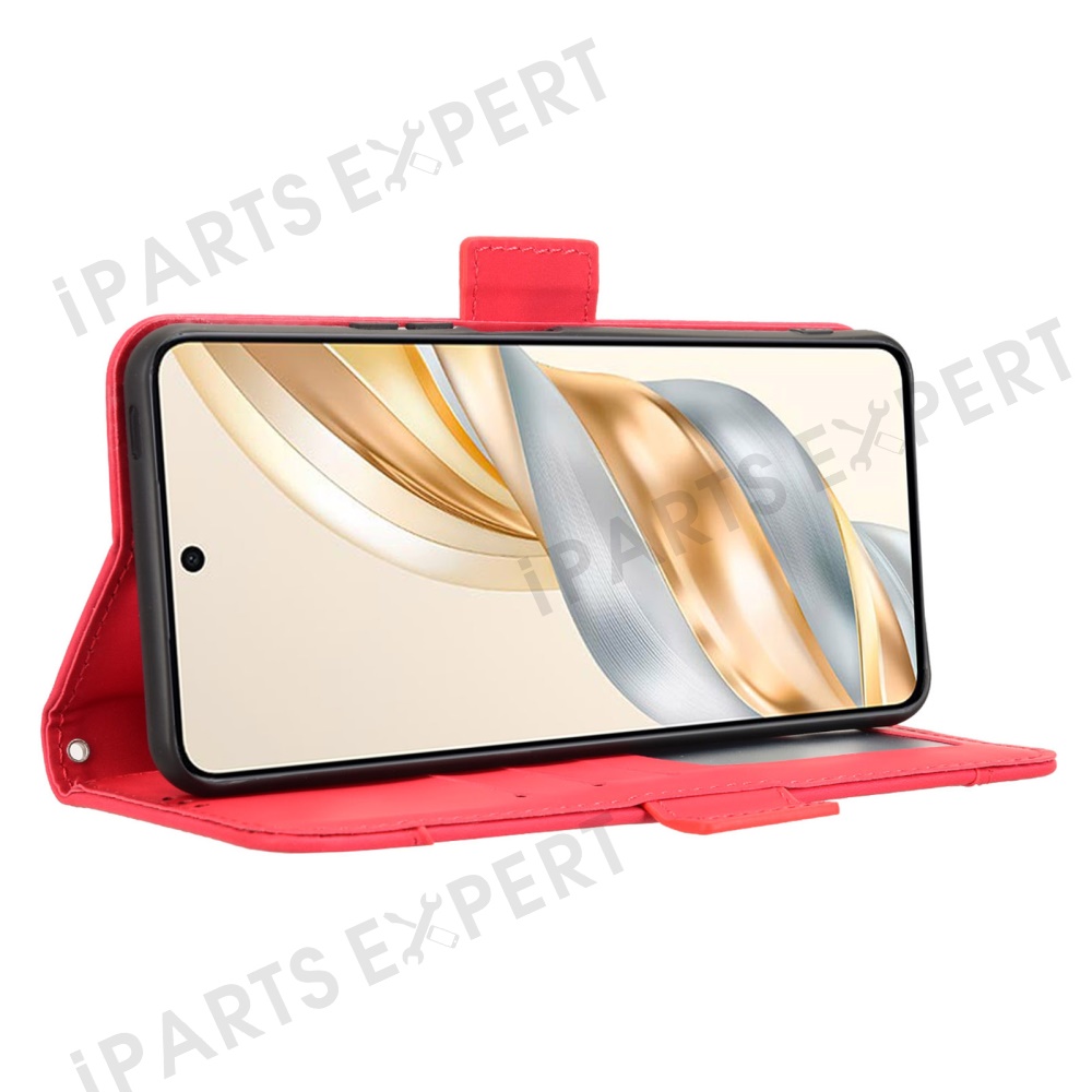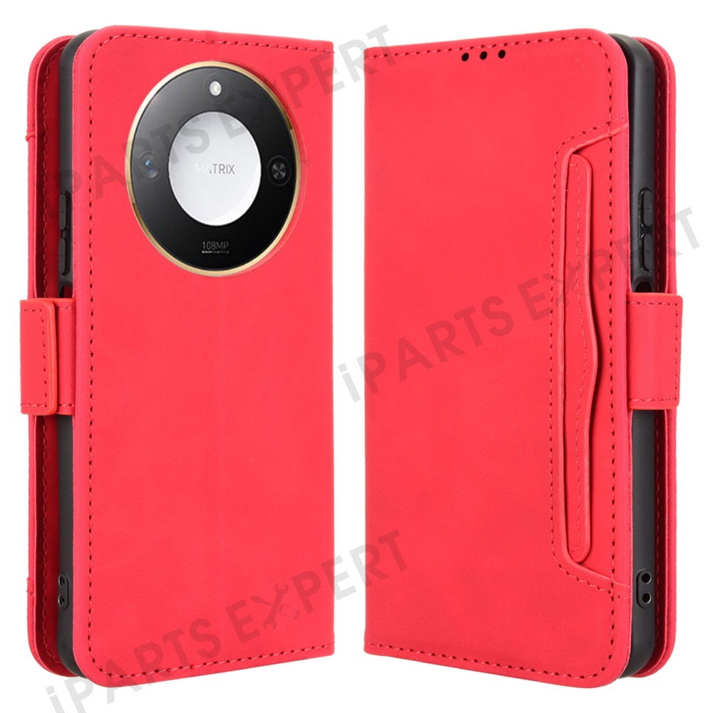 For Honor X9c Smart 5G / X60 5G Leather Case Phone Wallet Cover with Multiple Card Slots - Red