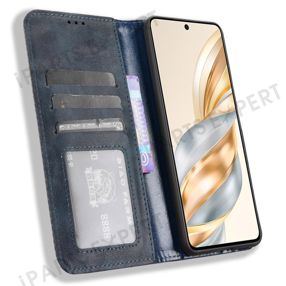 For Honor X9c Smart 5G / X60 5G Leather Case Wallet Stand Retro Texture Phone Cover - Blue