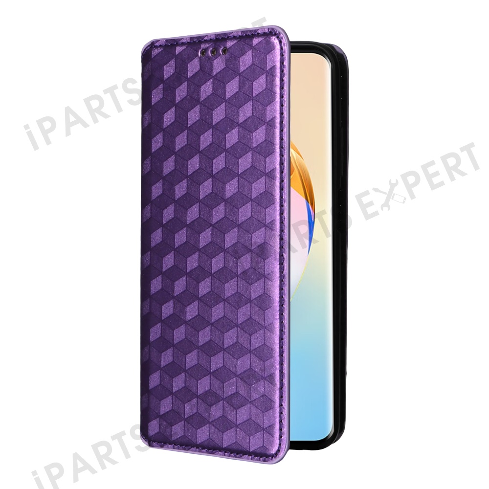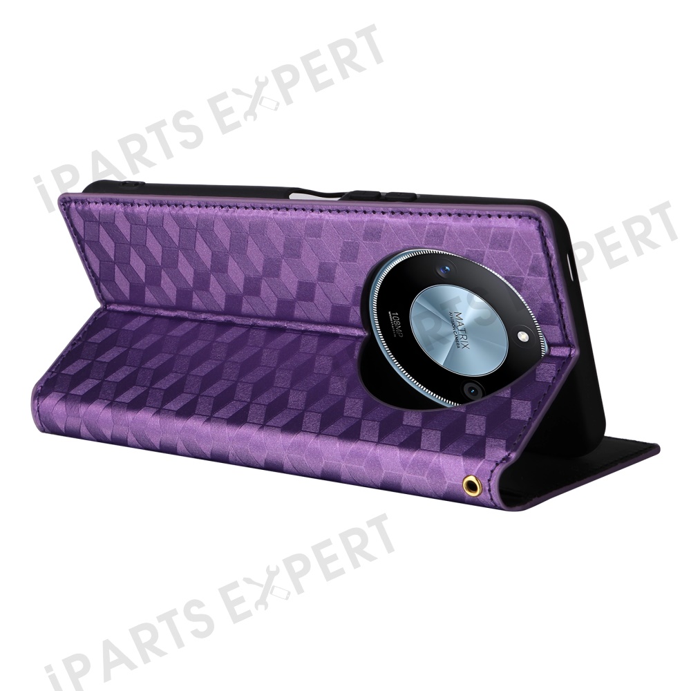 For Honor X9c Smart 5G / X60 5G Wallet Case Rhombus Imprinted Leather Phone Cover - Purple