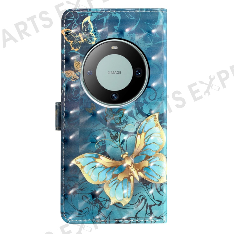For Huawei Mate 60 Case PU Leather 3D Pattern Design Magnetic Folio Phone Cover - Butterfly