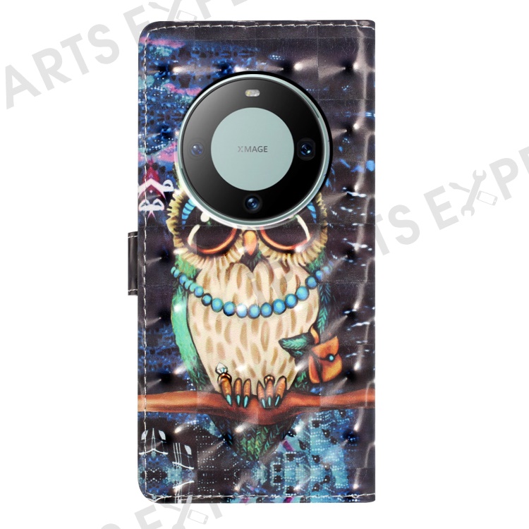 For Huawei Mate 60 Case PU Leather 3D Pattern Design Magnetic Folio Phone Cover - Owl