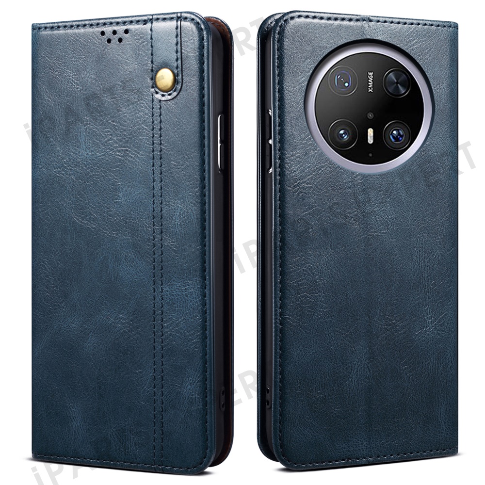 For Huawei Mate 70 Case Crazy Horse Texture Waxy Leather Wallet Stand Phone Cover - Blue